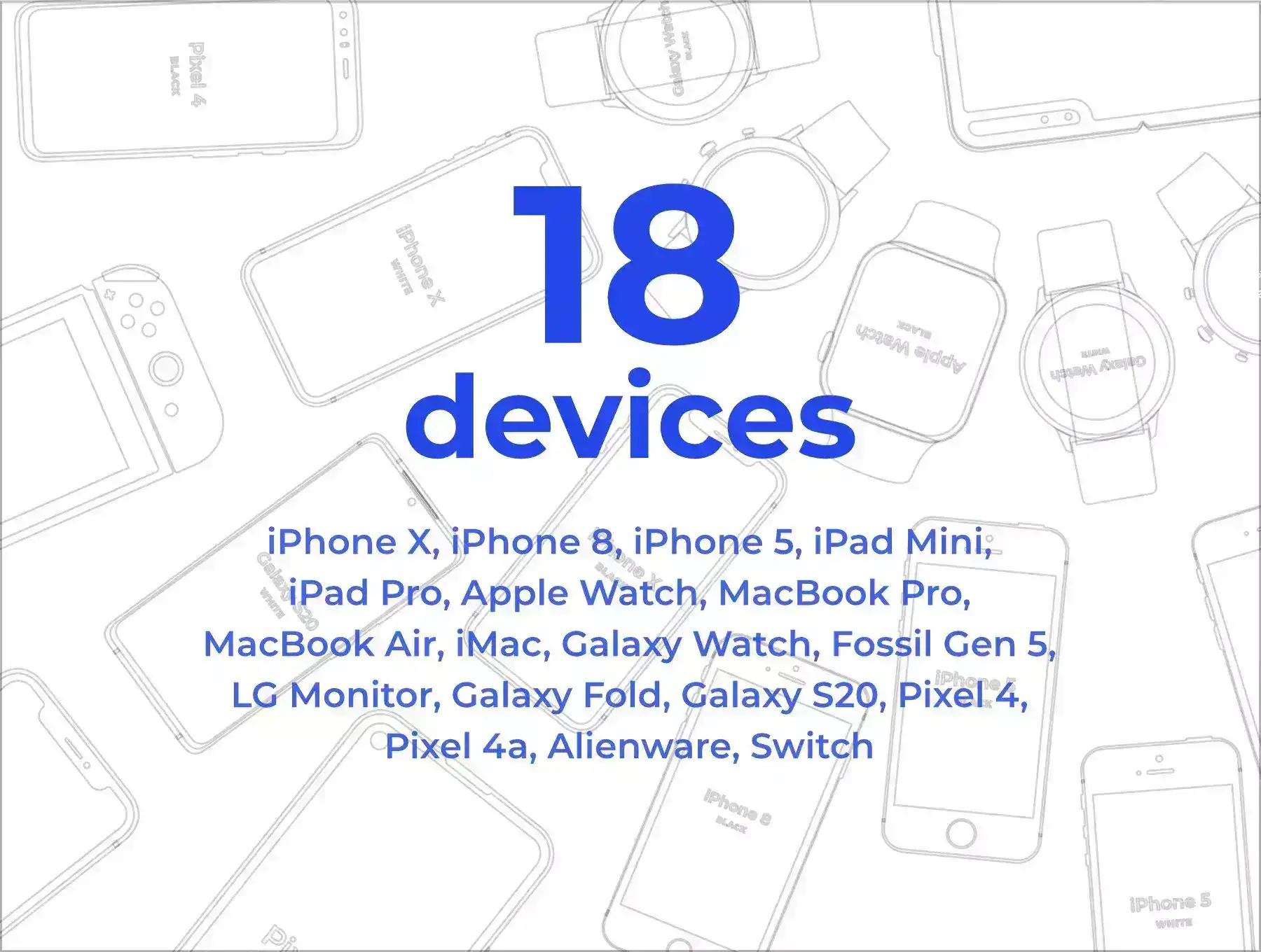 Mockups of 18 devices in two styles.