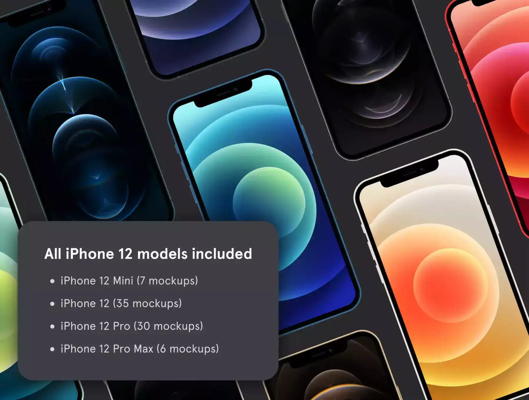 • iPhone 12 Floating Mockup with 7 Color Variations