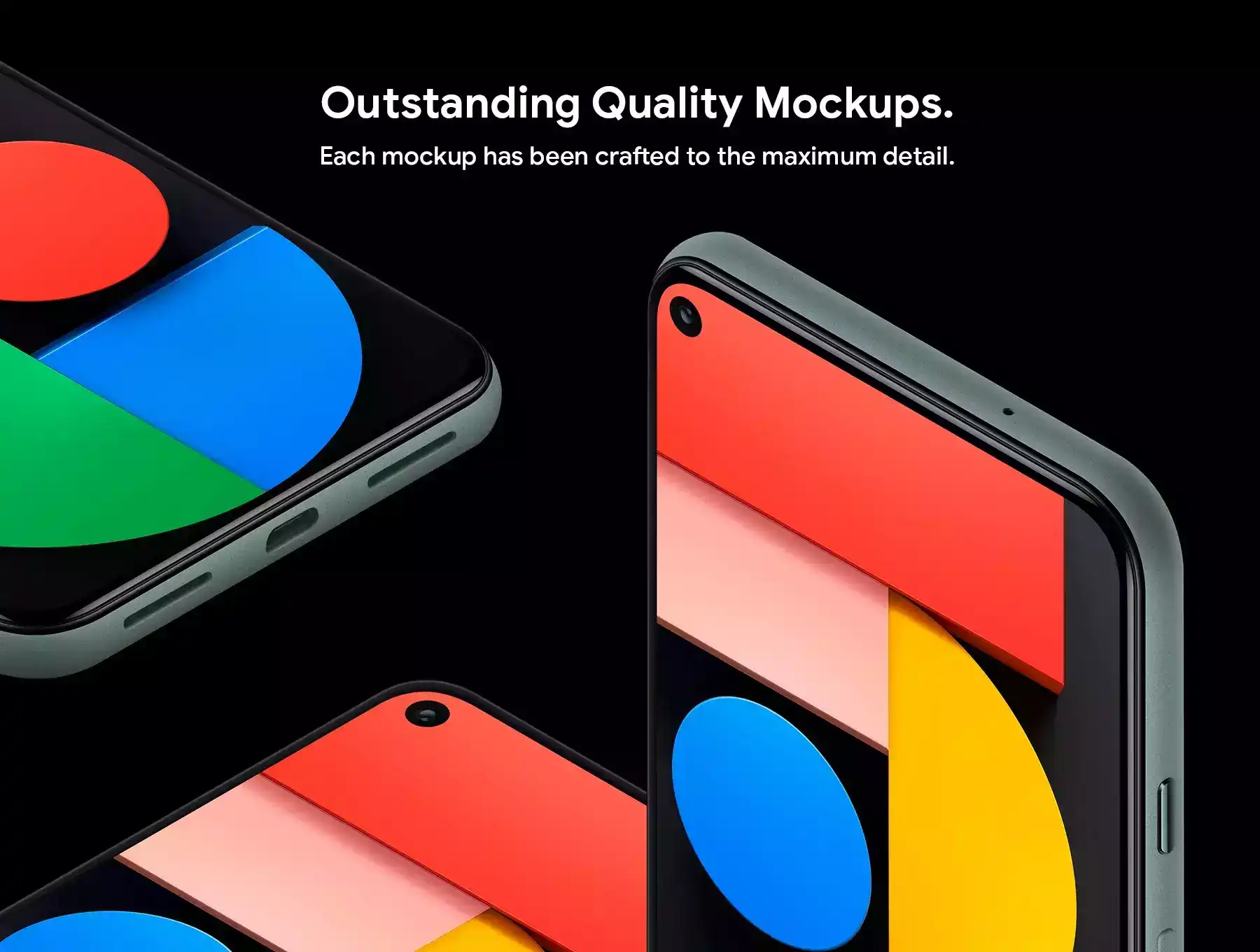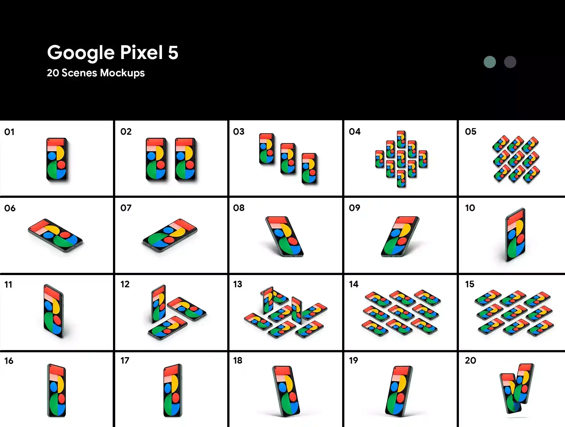 - Includes 20 Mockups Scenes of Google Pixel 5 PSD high-quality files (All the scenes that you will see in the 2nd picture they already included in the purchase).