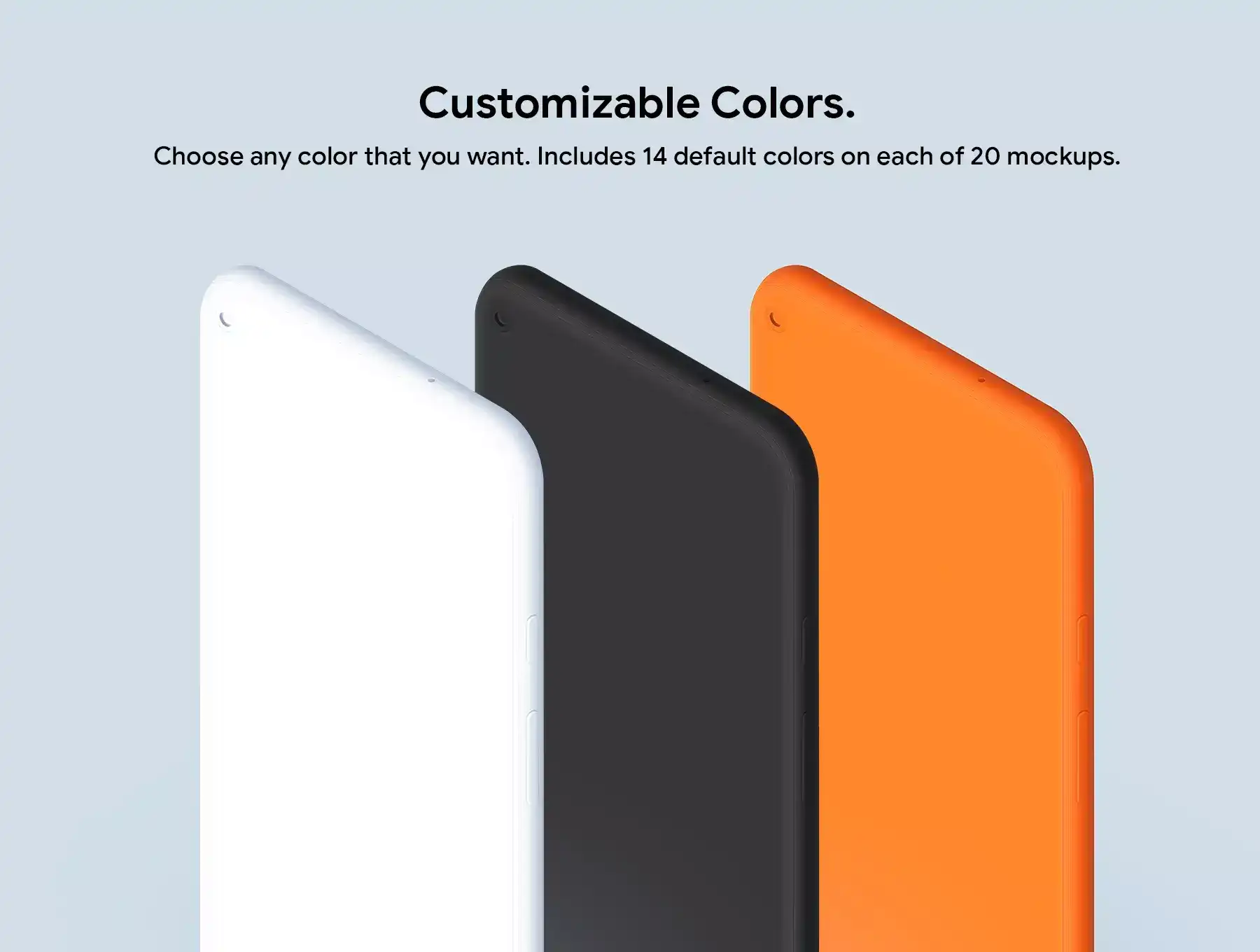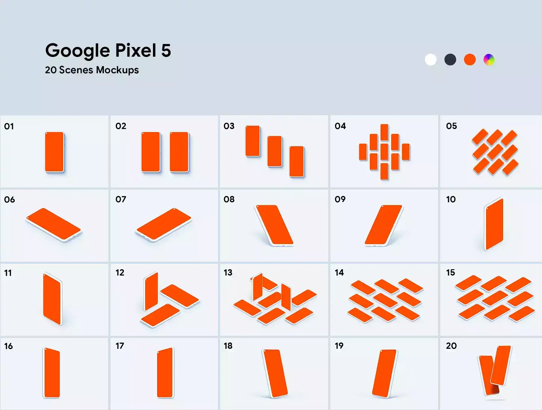 - Includes Google Pixel 5 - 20 Clay Mockups Scenes PSD high-quality files (All the scenes that you will see in the second picture they already included in the purchase).