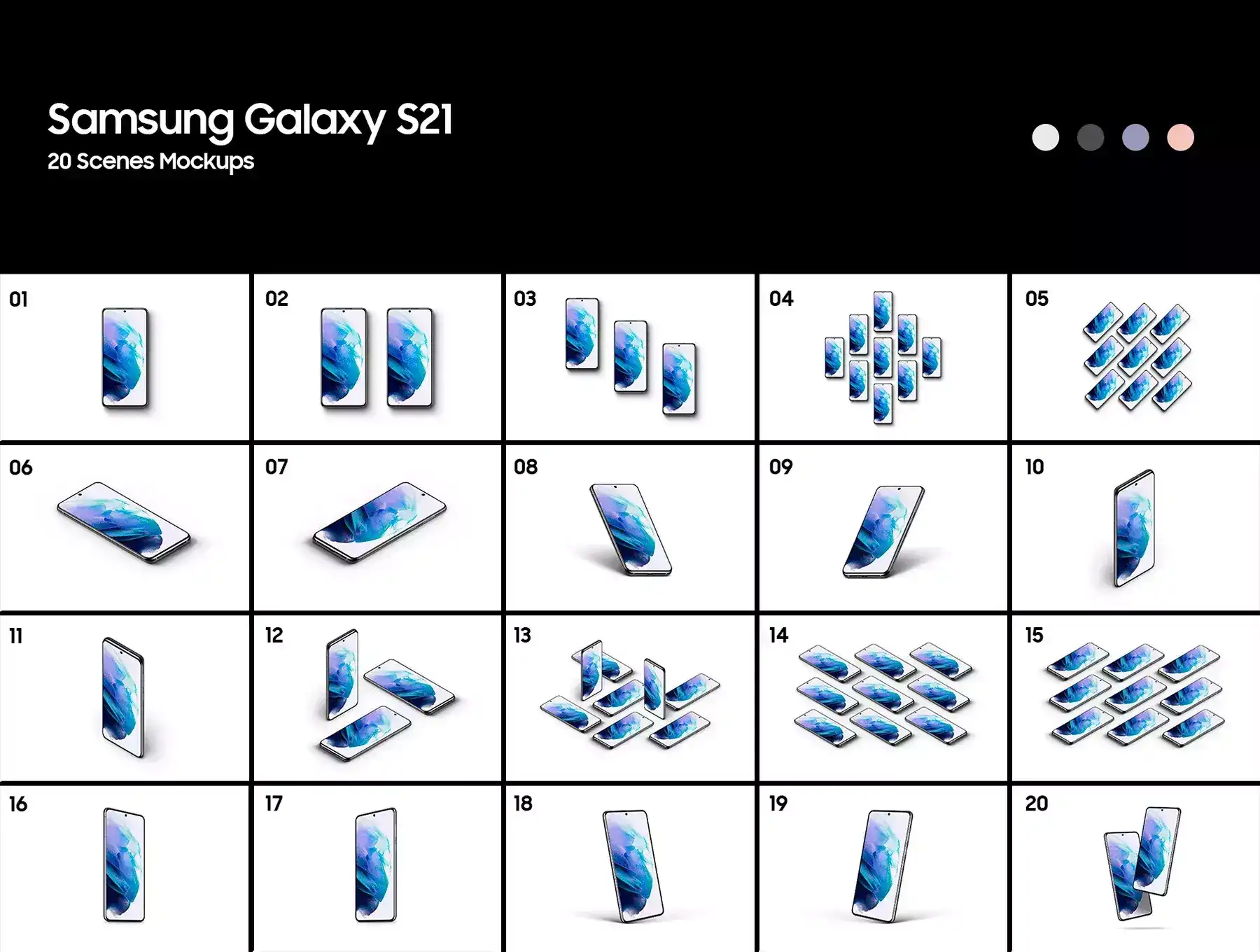 - Includes Samsung Galaxy S21 - 20 Scenes PSD high-quality files (All the scenes that you will see in the 2nd picture they already included in the purchase).