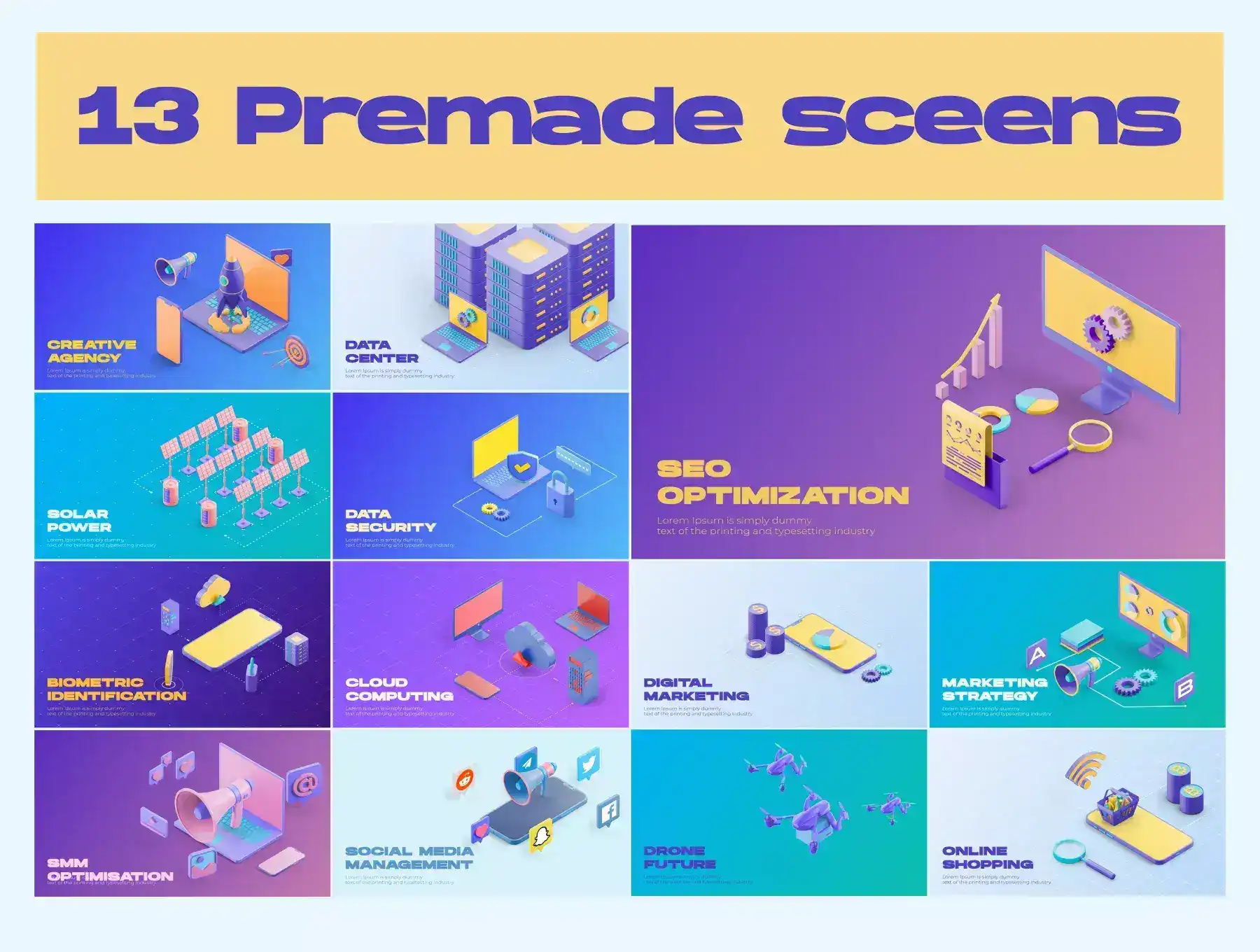 Animated Toolkit 3D Use is perfect for social media design, broadcast design or professional video explainer. Amazing 3D design holding attention and vitally affect your bounce rate. Use it for YouTube, Instagram, Facebook and TV making animated stories, posters, openers and apps. It’s focused on communicative design in one style: bright color combinations, simple shapes, clean typography and compositions fit for any frame orientation to provide a better user experience at any modern device.