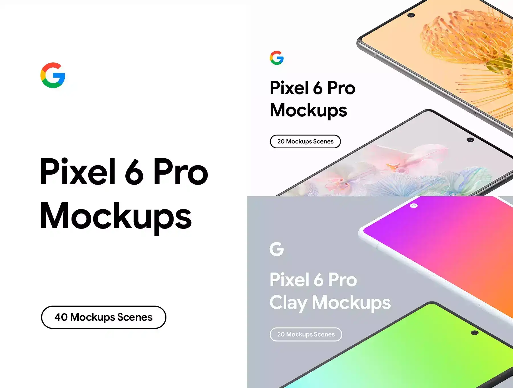 Google Pixel 6 Pro - 20 Mockups Scenes - PSD