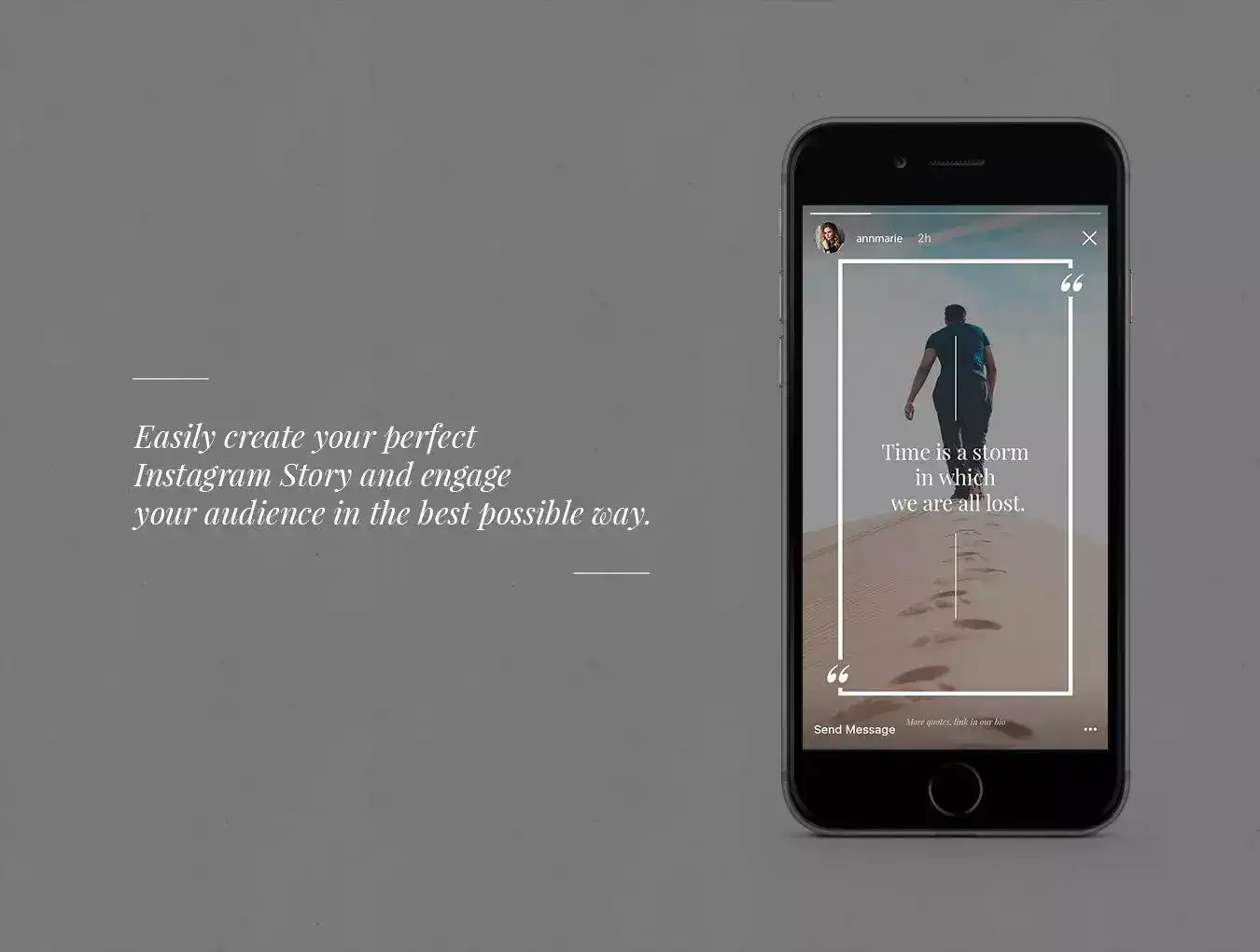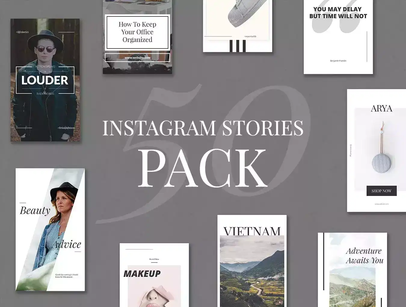 Ready to use 50 Instagram Stories Pack will inspire you and your followers. Change the text, colors, images, strokes and shapes to achieve the best result you want. Mix and match to create your custom stories, and achieve the best impact to your followers.