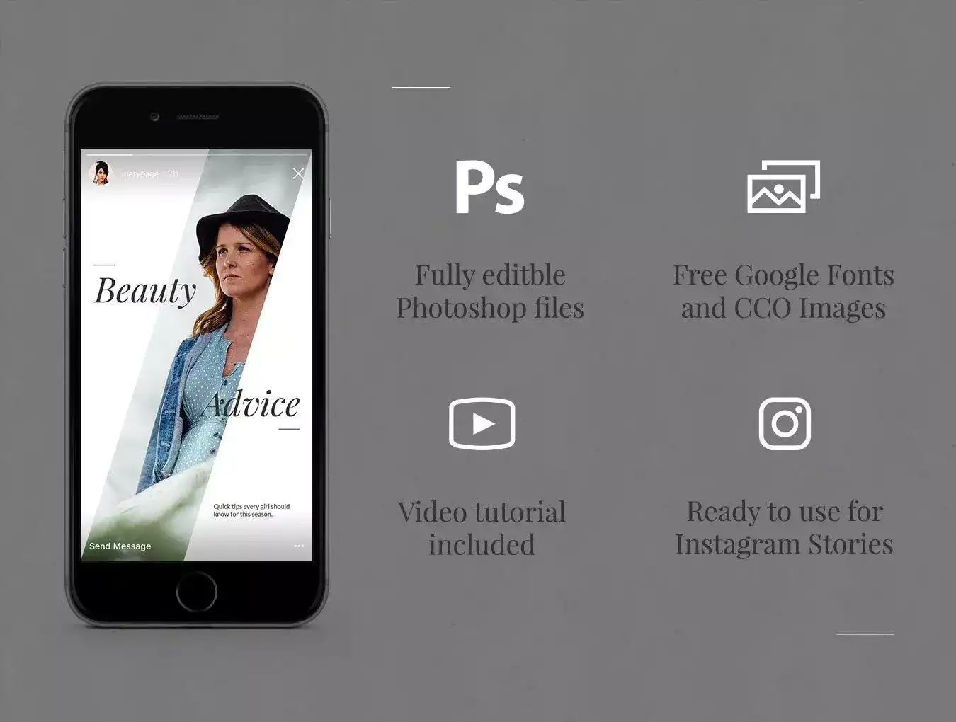 Clean file setup will help you edit stories in seconds, 5 categories will give you a lot of options to chose from and video tutorial will help even the most basic users get started right away.