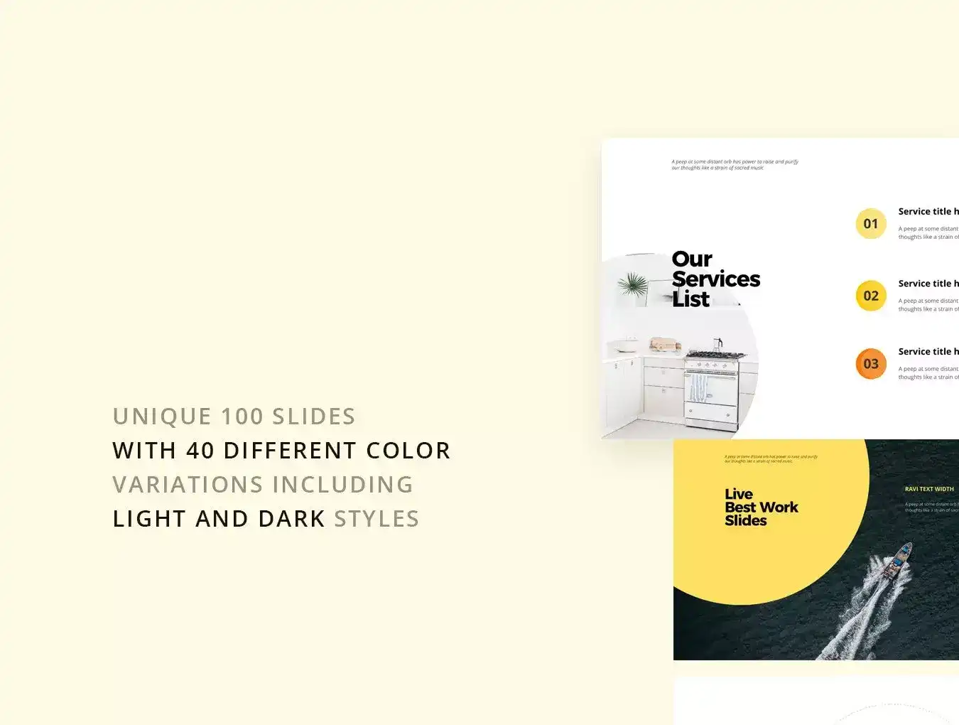 Ravi is a multipurpose keynote and powerpoint presentation. When creating this presentation, I focused on ease of use for those who will be buying this presentation. Ravi is suitable both for companies and for designers! You can easily make any adjustments, from changing color to inserting the images you want. Also, please note that the used images are not included in presentation and animation for keynote and for powerpoint have differences.