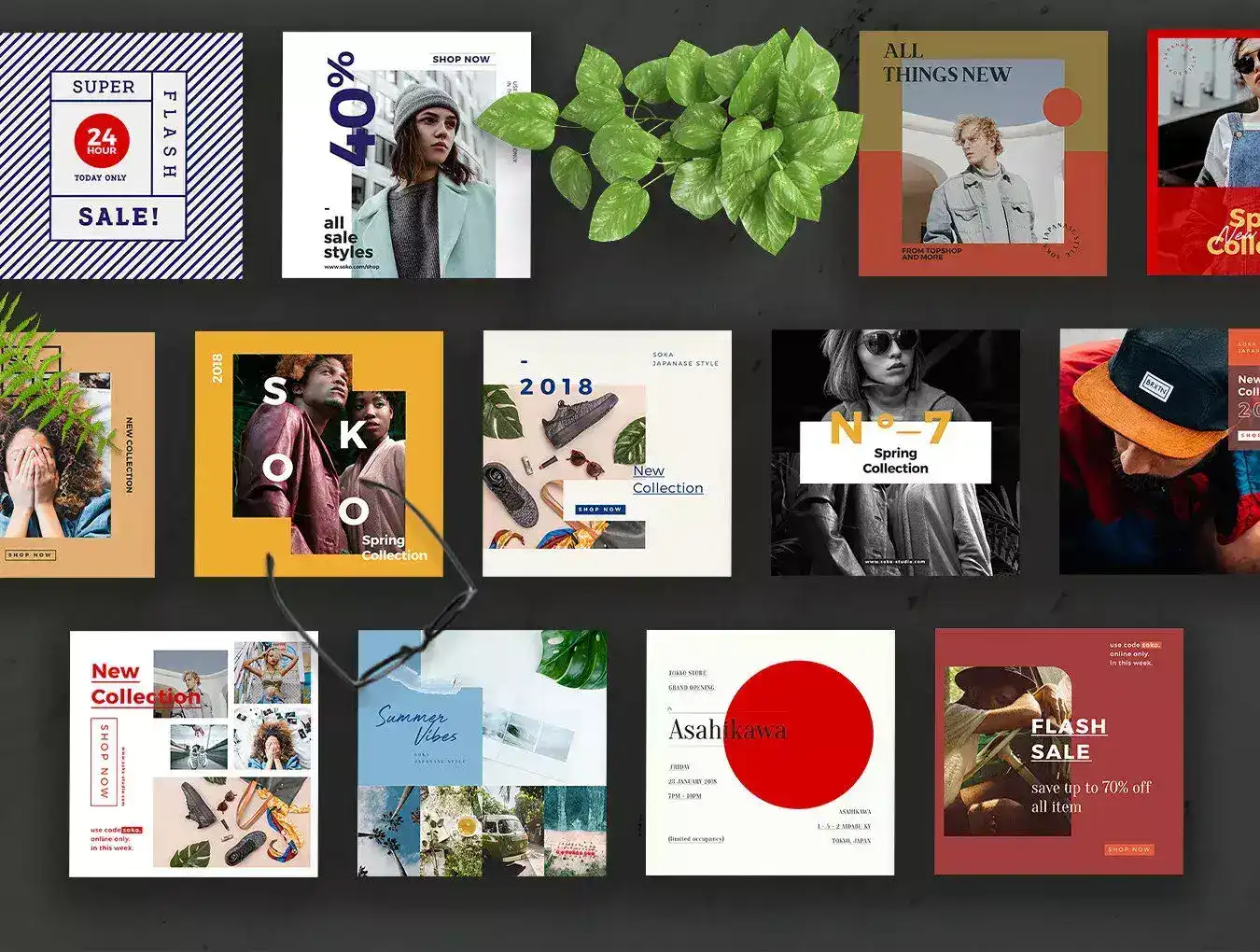 Give your social media account an update with SOKA-Social Media Brand Pack Templates. Inspiration with Japanese Vintage style, best for your Product, E-commerce, Blogs, and Personal Account. This great design to promote their work across all social media platform including Facebook, Instagram, and Pinterest. Please note all images used are for presentation purposes only, and not included.