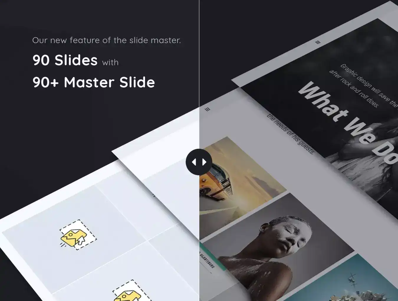 This is our new feature of the slide master. You just need to choose your favorite design of the slide from your slide master gallery it comes up with fully customizing slide for you to replace the text, picture and many more. Also it keeps the text format as it’s shown. This feature really helps you to save time for editing formatting Picture, title, body text, chart and infographic etc…