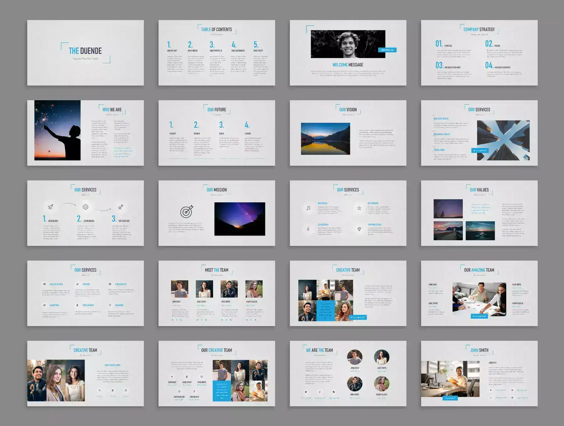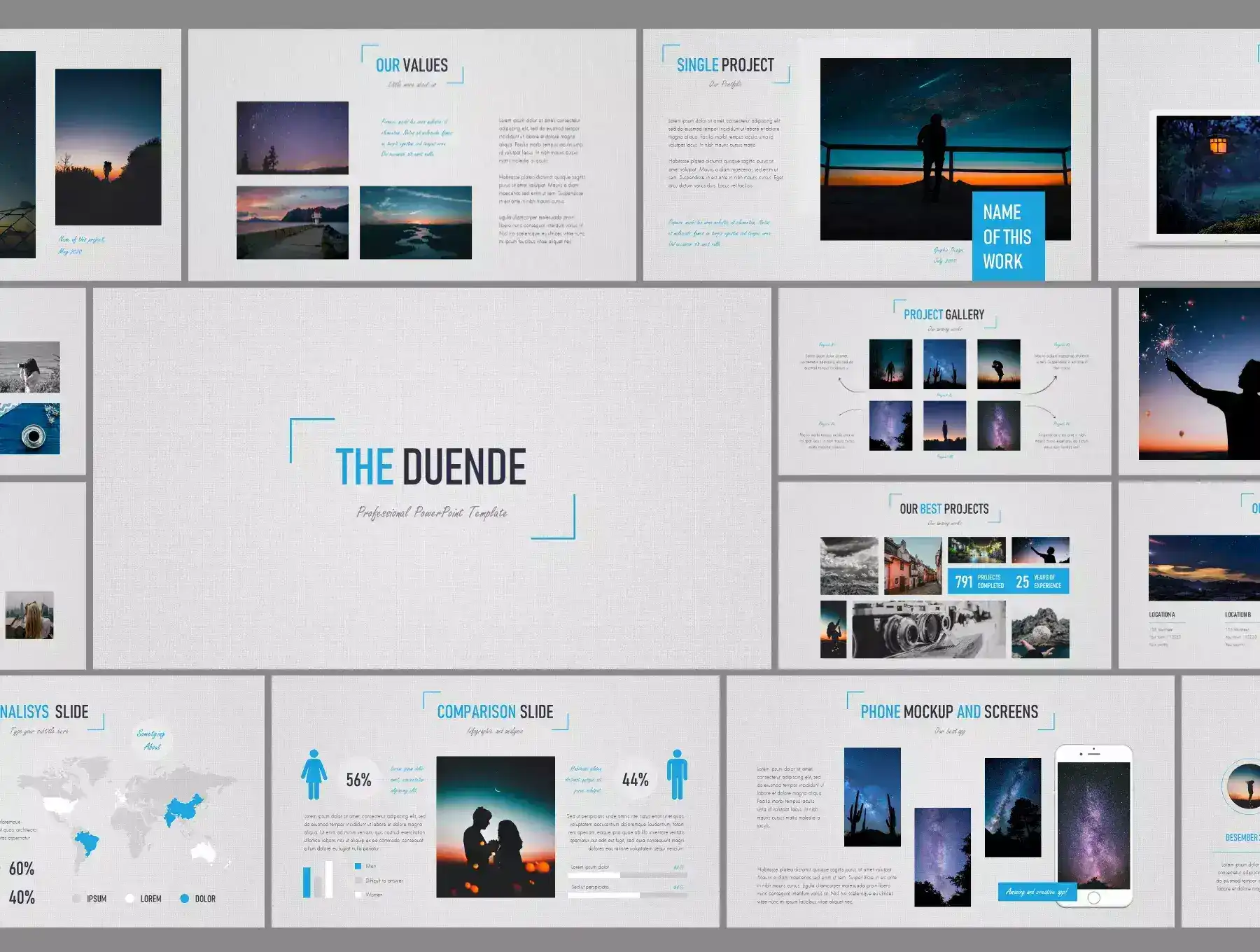 Duende is a stylish and impressive PowerPoint presentation template. All slides were designed using beautiful unique style. This presentation has an interesting, good-looking texture as a background, which gives it a unique stylish look.