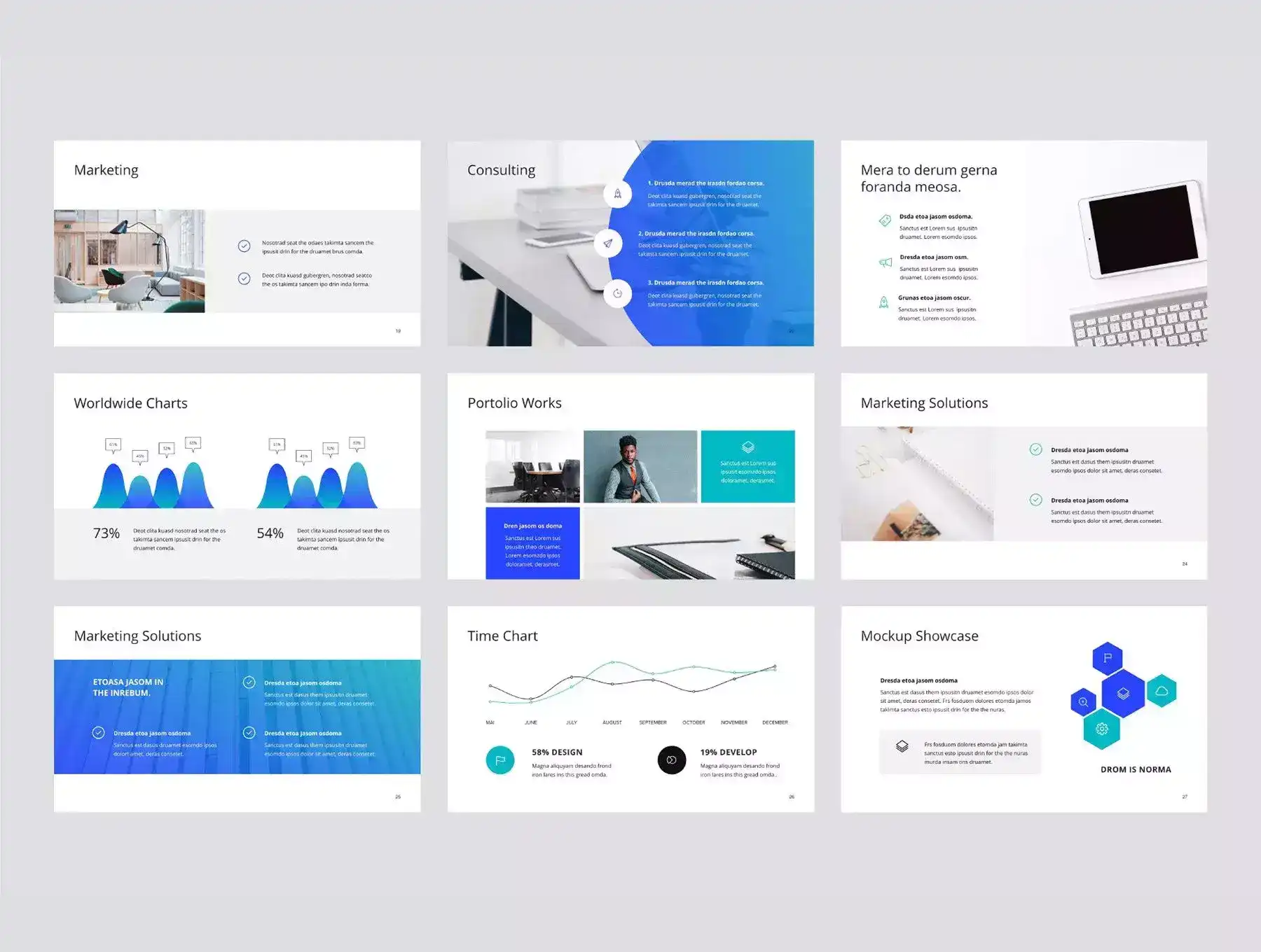 - 500+ Vector Line Icons in slides included (Easy resizable & editable colors)