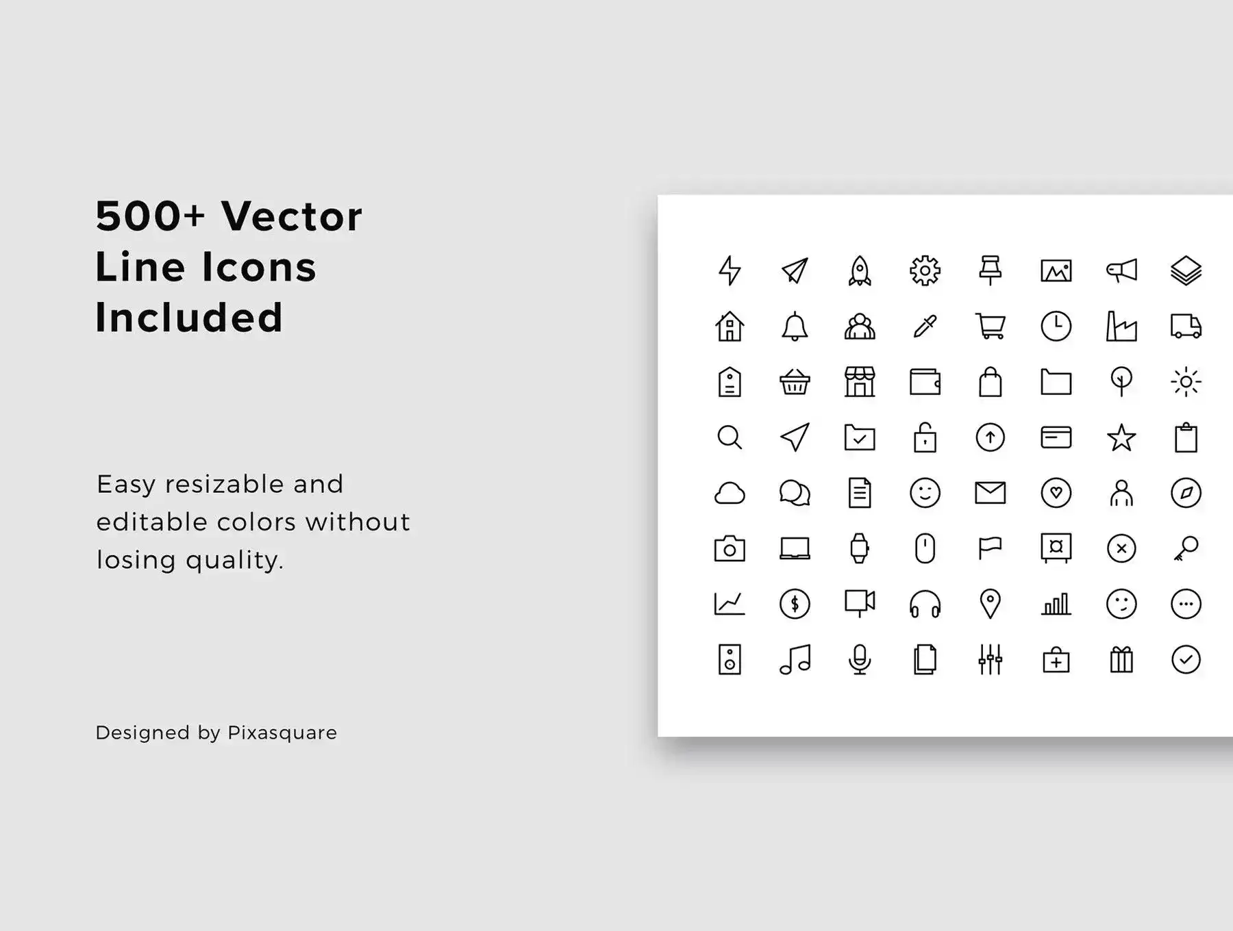 - 500+ Vector Line Icons in slides included (Easy resizable & editable colors)