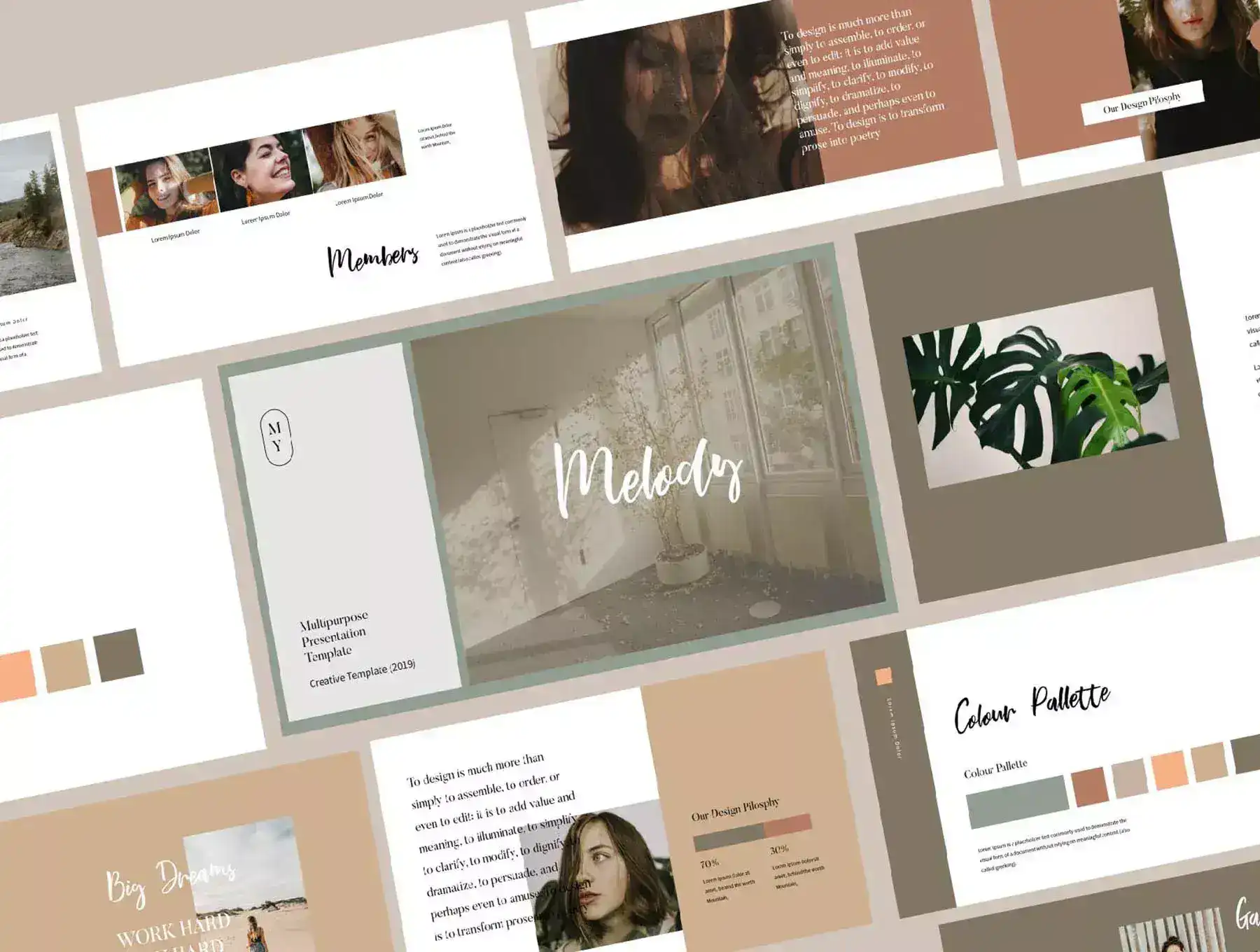 Melody is minimal brand guidelines Powerpoint template /Full. Every slide is unique and not just repetitive layout. Just use powerpoint you can create gorgeous brand guidelines for your brand, it's perfect for digital brand guidelines, marketing kit or for brand presentation. And Melody PowerPoint Template now you can create a powerful and professional deck with a striking design in just a few minutes instead of hours (or even days).