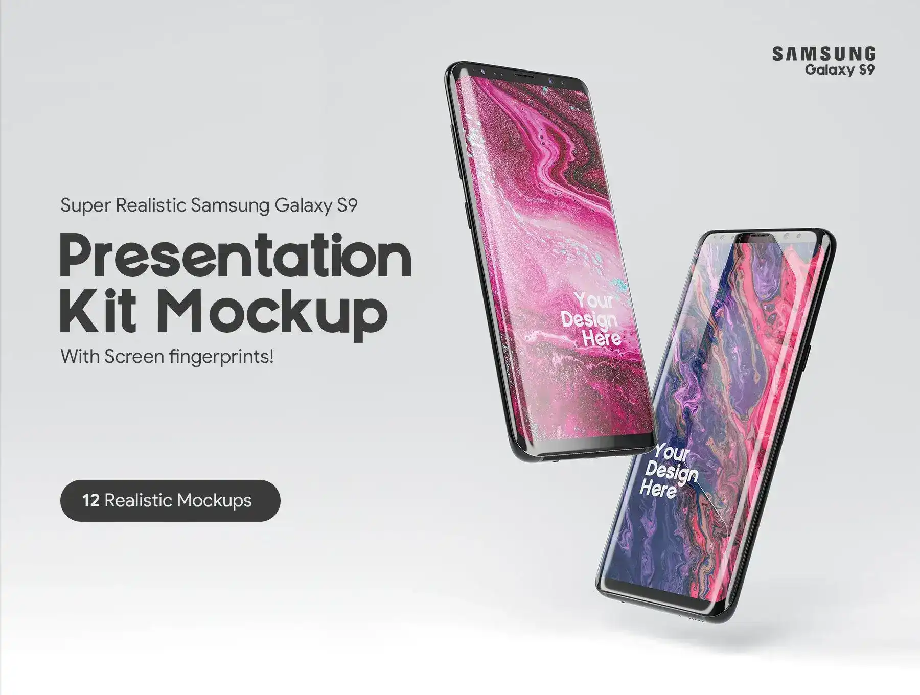 - Includes 12 Mockups Scenes of Samsung Galaxy S9 PSD high-quality files.