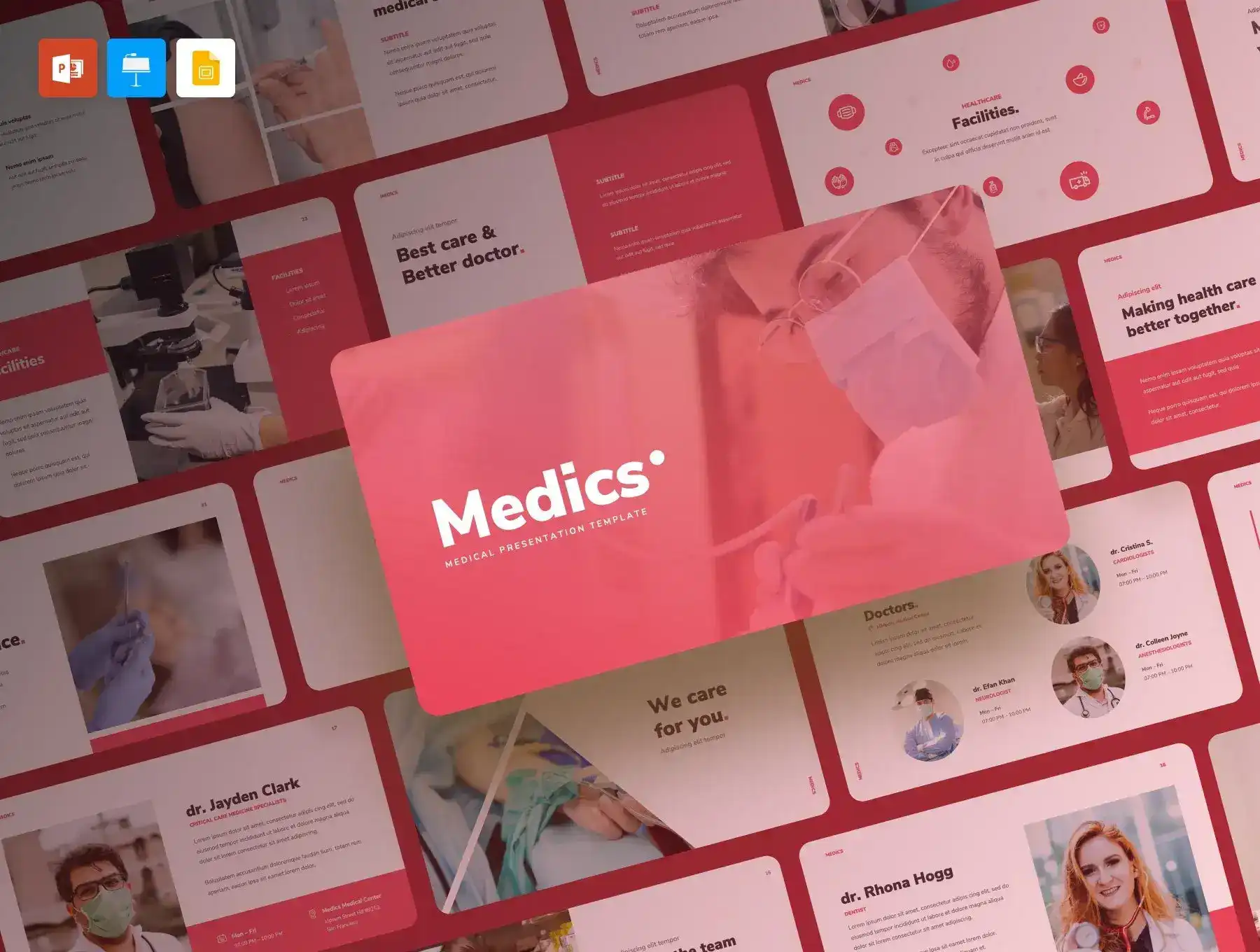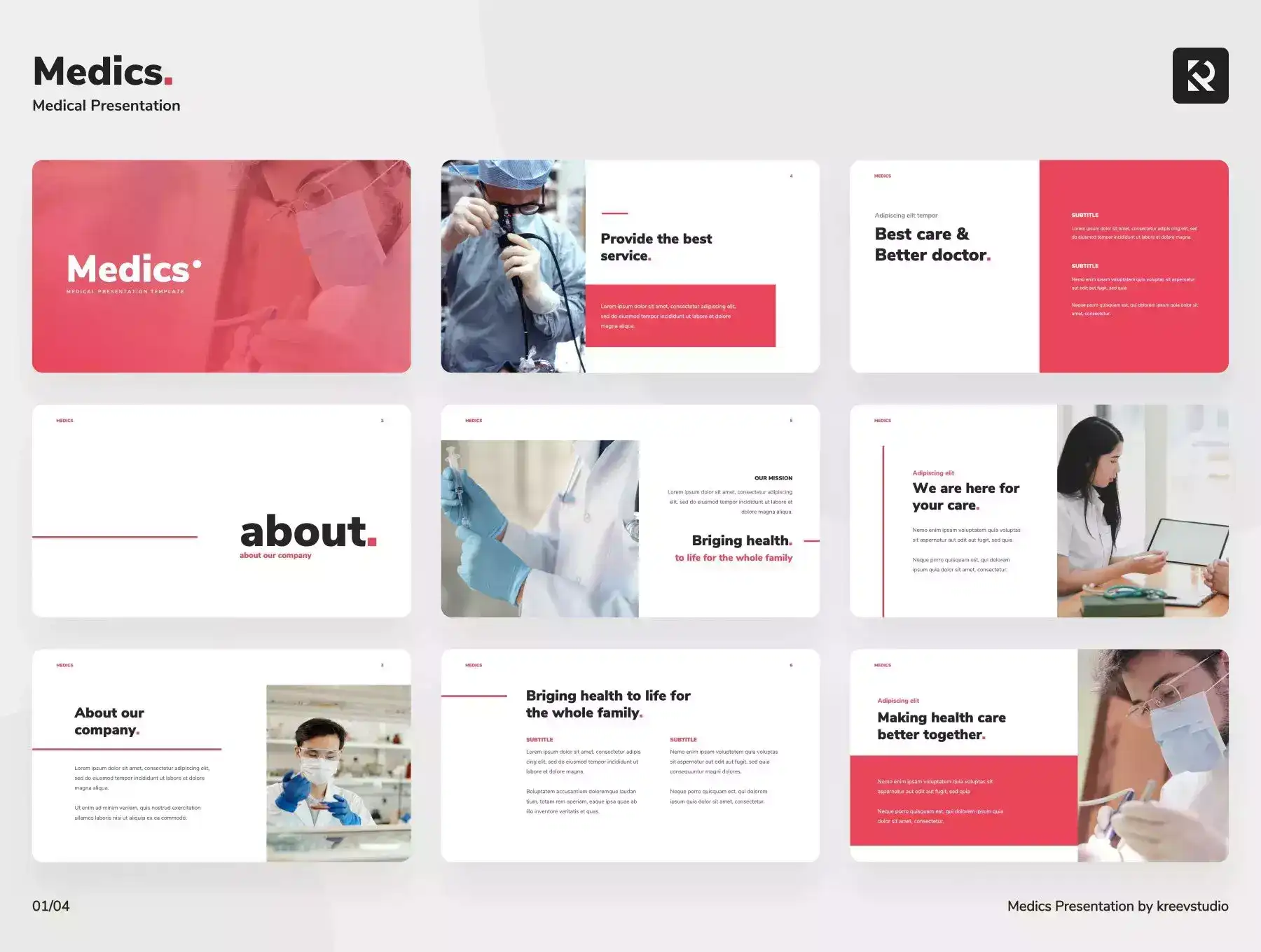 Medics is a presentation template that can be used for medical company needs, such as hospitals, clinics and health care services. With an amazing presentation design, it can enhance your company’s brand.