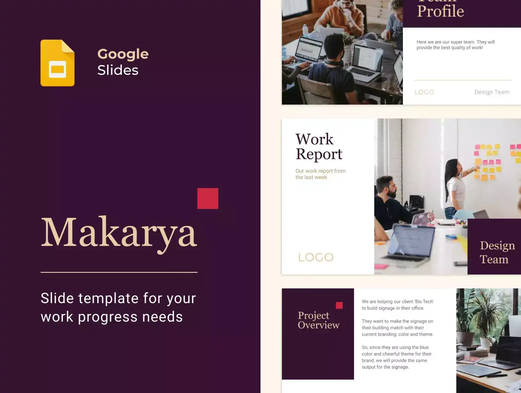 Makarya Slide Template is a choice for you who need to present your work progress, Individually OR with your team.