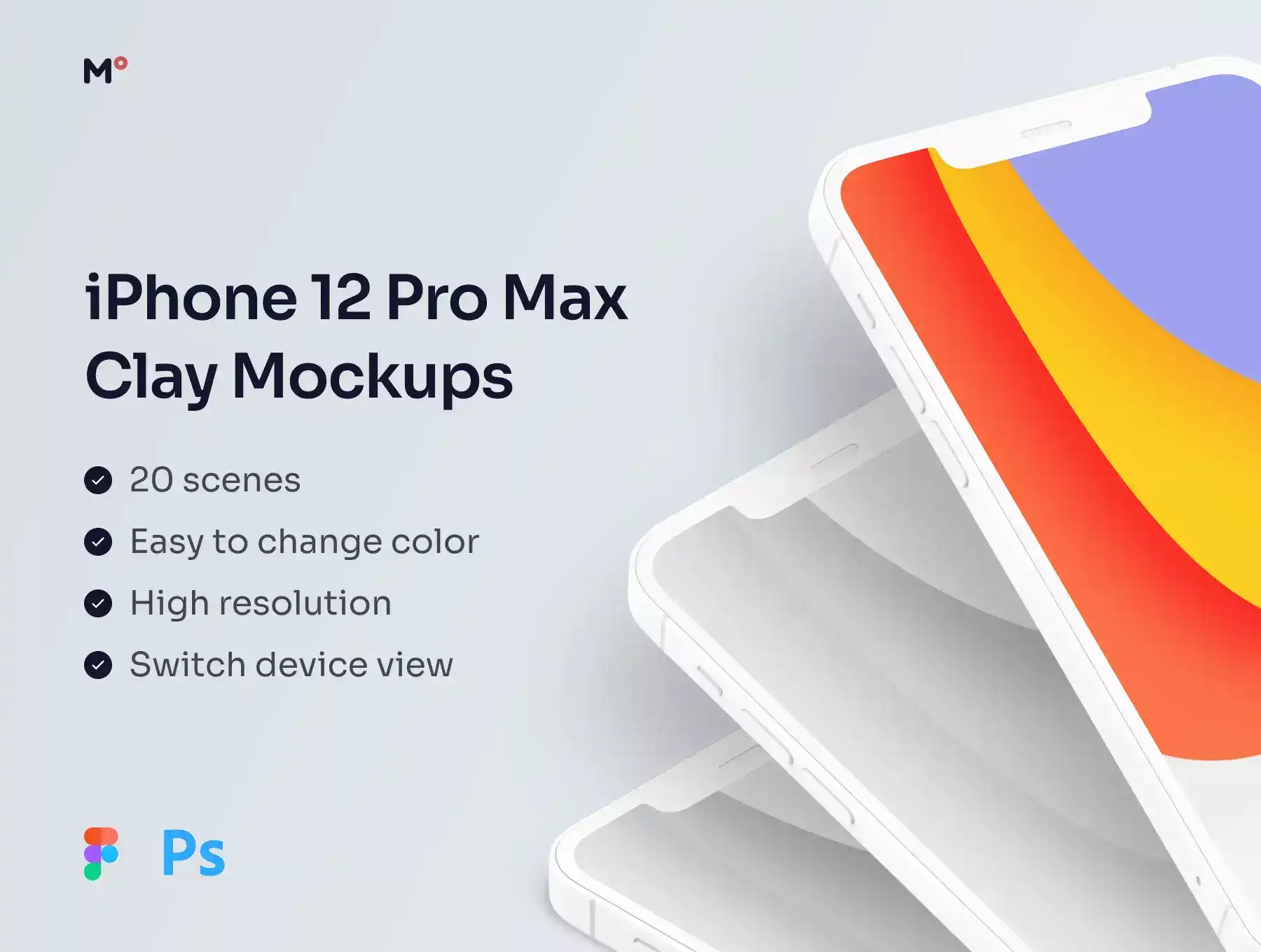 Presenting iPhone 12 Pro Max Clay Mockup! The mock-up files are highly detailed, uses smart object feature which helps you change the design just in seconds.