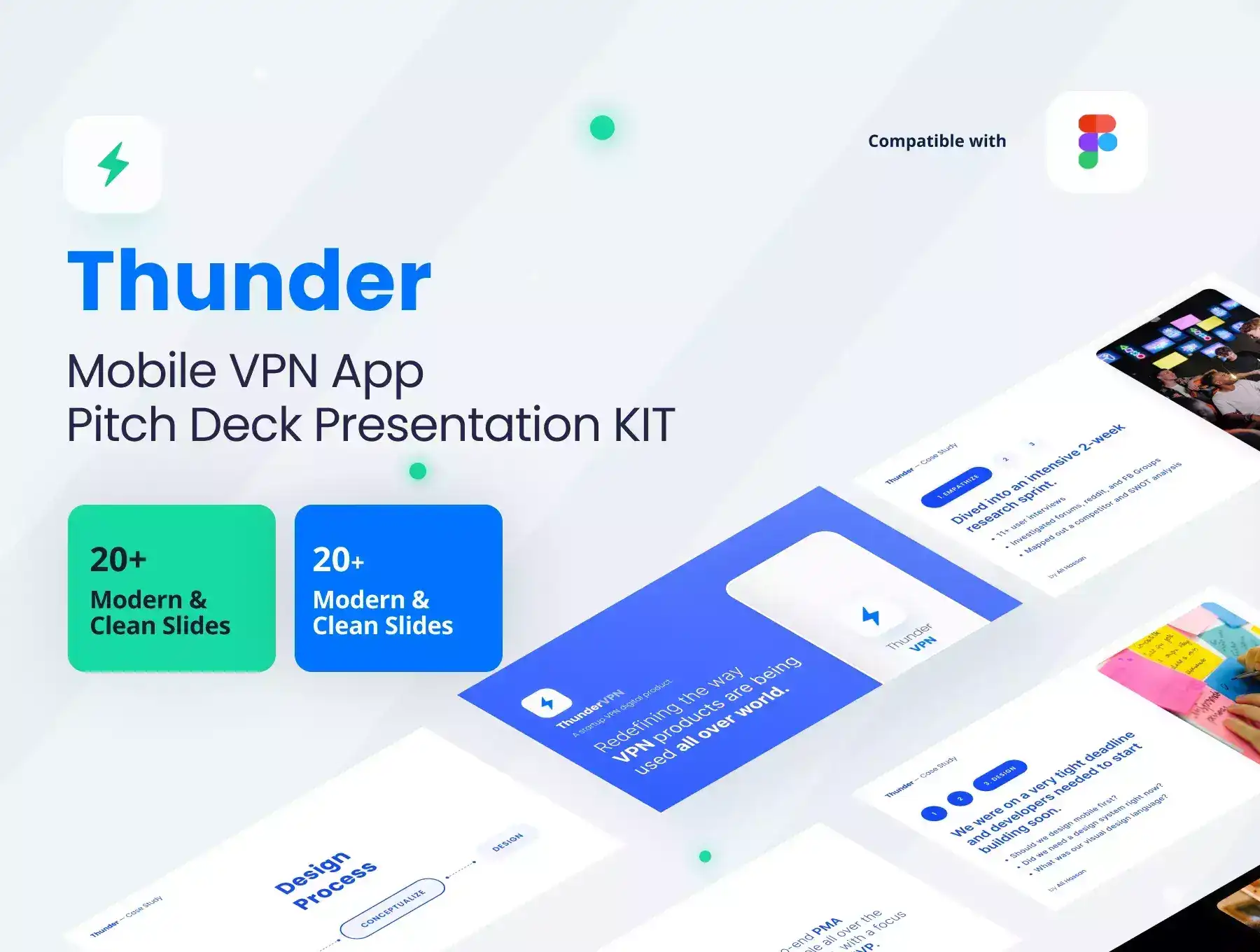 Thunder is a Premium and High-Quality Mobile VPN App UI Kit with 70+ HQ screens and easy-to-use in FIGMA Designs crafted with Love and more focused on UX-friendliness.
