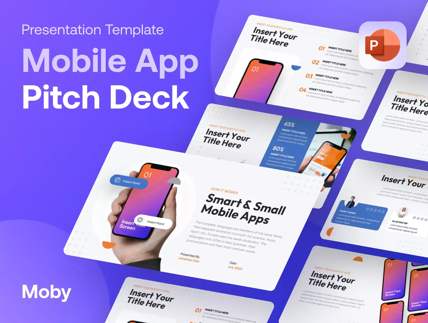 Moby – Mobile App Presentation Templates is a modern, clean, and ready-to-use template that would be ideal for mobile app presentation for any mobile company, the starter in a startup, or any professional, academic, or businessperson for anybody who wants to present their amazing project or original ideas. This presentation comprises slides with content that is both Modern and Simple. There is no requirement for any additional program, just PowerPoint. It can be fully customized, and all of the forms are editable, removable, and scalable without reducing quality.