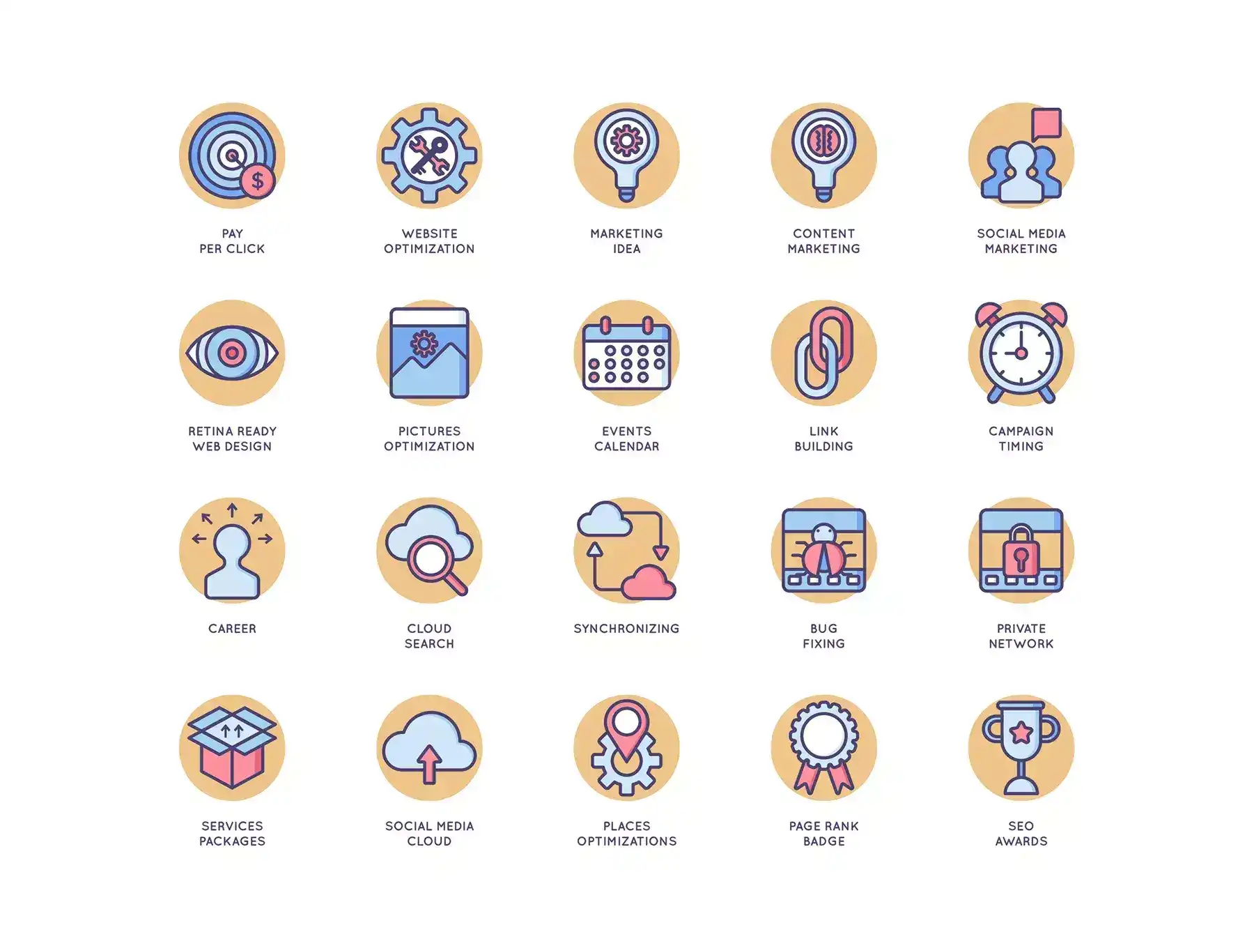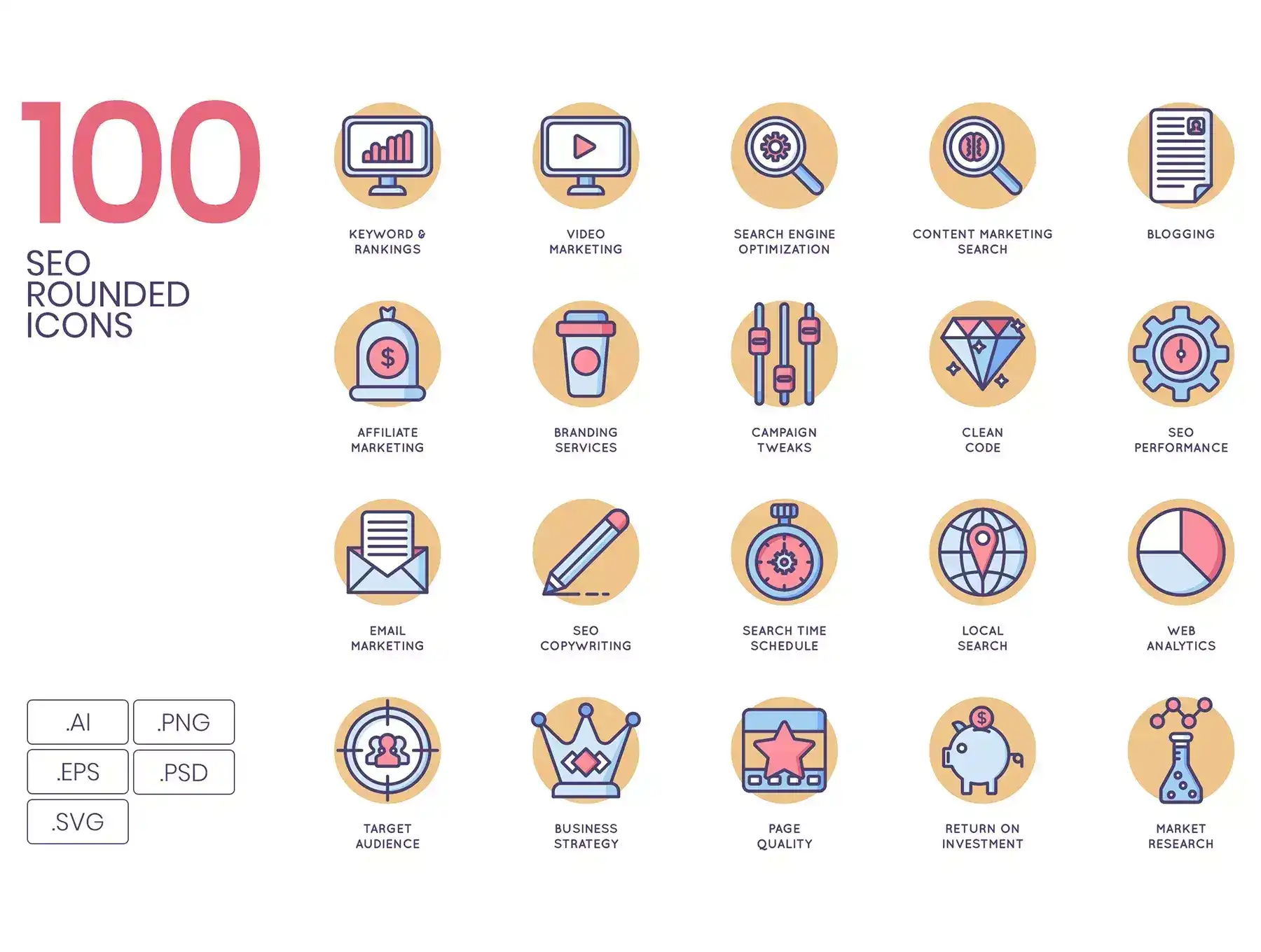 That means working and understanding the creative and technical aspects of writing too! And what better way to understand these things than some visualization? These 100 SEO Icons are sure to help you better understand, and then utilize, SEO! Or maybe you’re thinking of using it another way? As a marketing tool, in a website or app, or a presentation, perhaps? You can do that too! These SEO Icons are so versatile your imagination is the limit!
