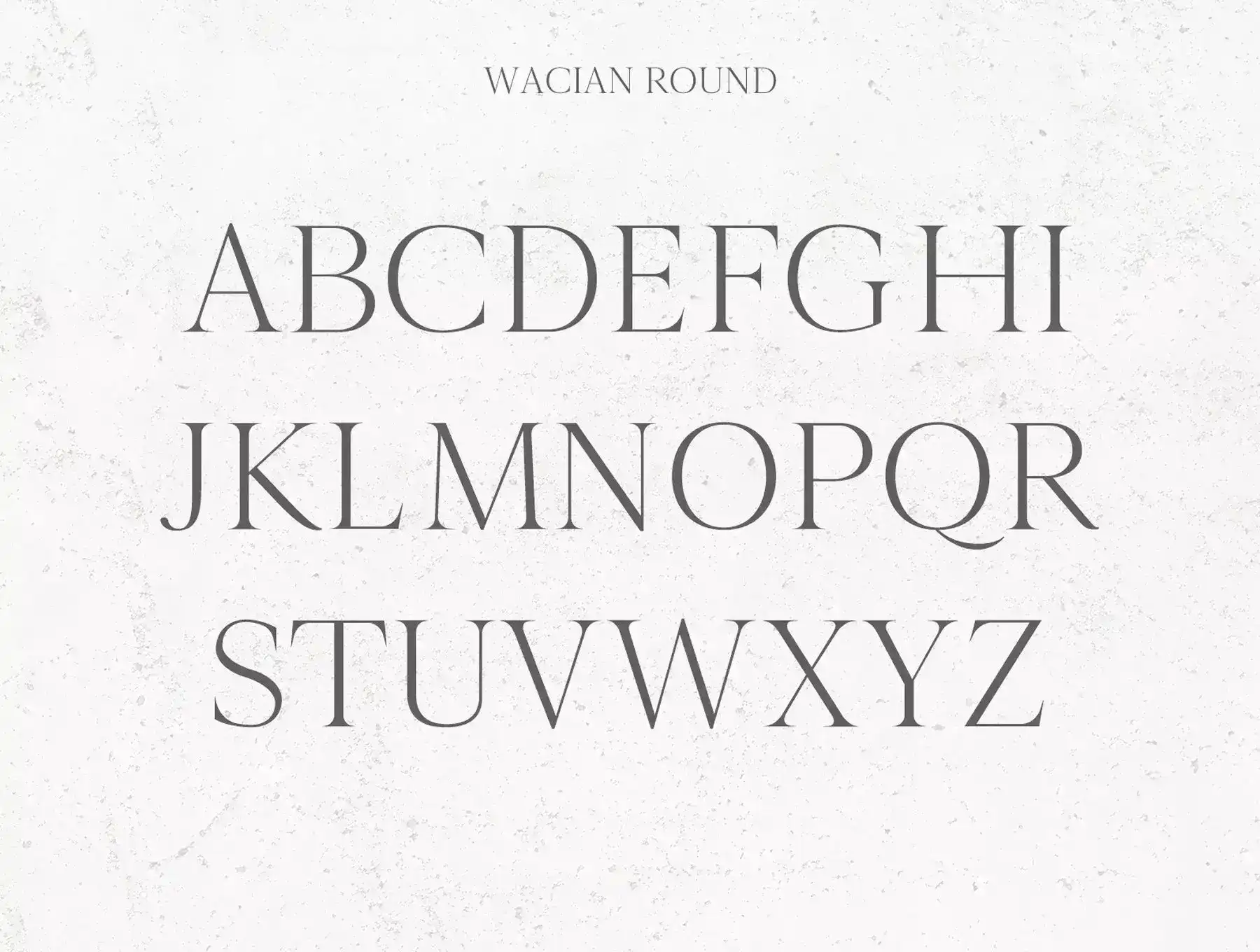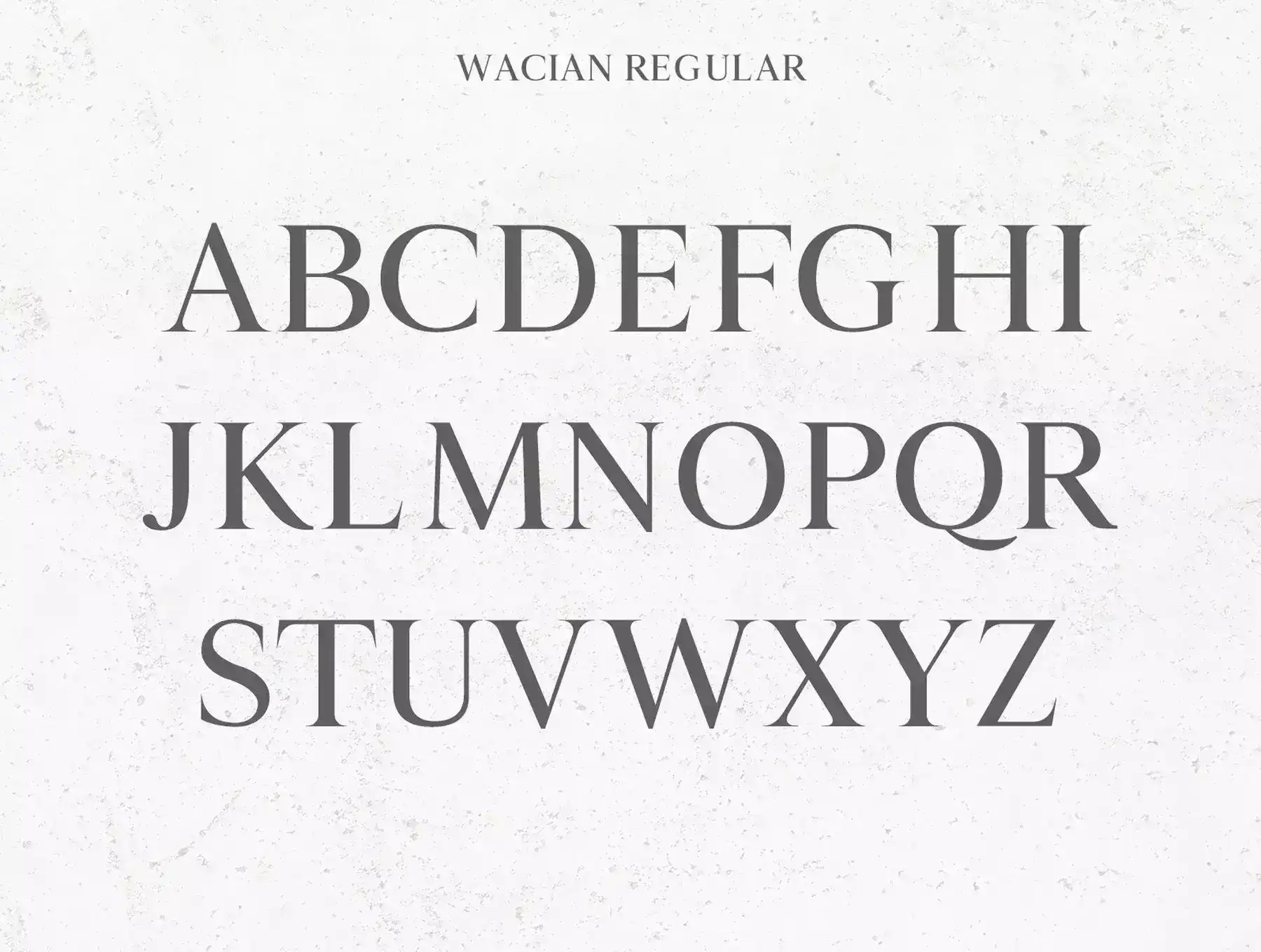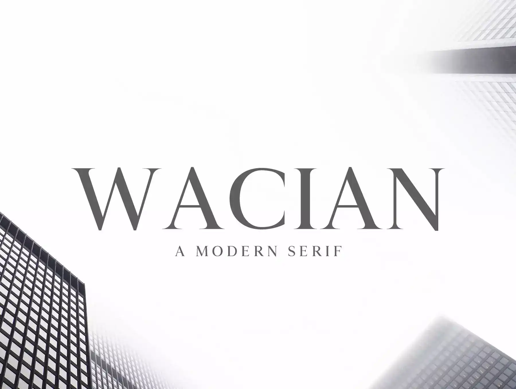 Wacian is a unique modern serif font. It contains 5 weights with all basic glyphs with Non-English characters. Wacian can be used for headlines, posters, branding, packaging, presentations, logo, quotes, titles, magazines headings, web layouts, advertising, invitations, packaging design, books, and nearly any creative design.