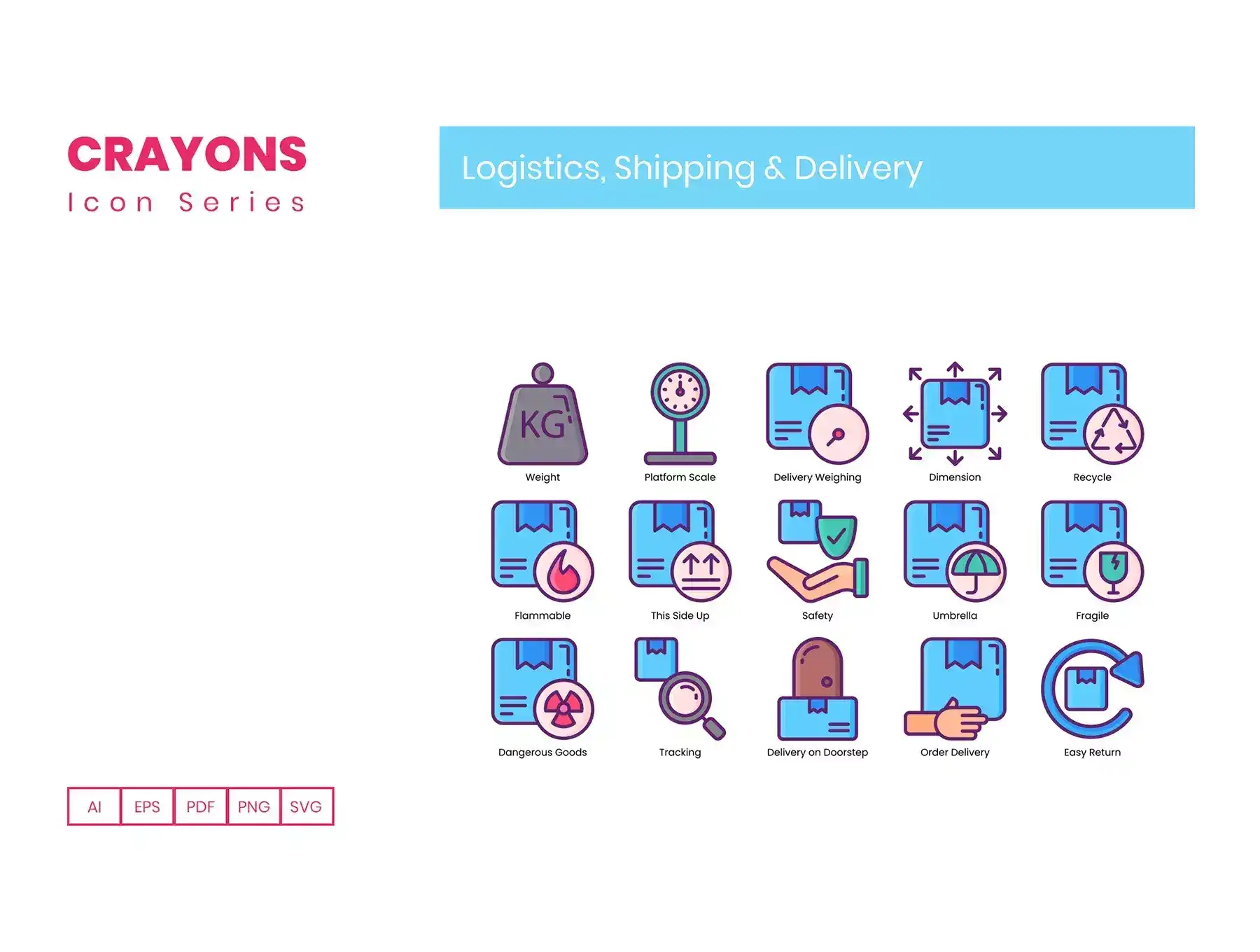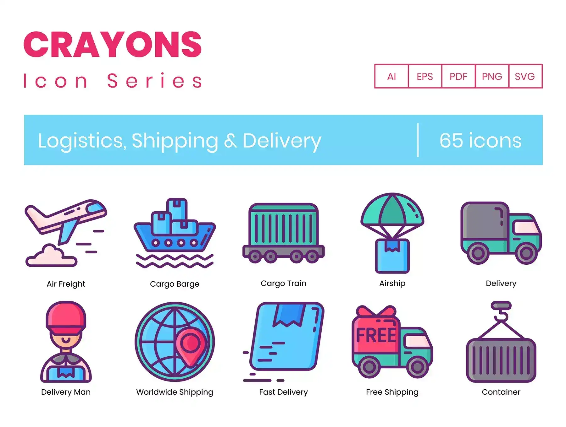 With these 65 Logistics Icons, explore the world of logistics like never before! With ideas about how to do things from end to end, these icons will give you a fresh perspective about the world of logistics! Use it as a tool in your campaign, or presentation, or make it a visual aid for your website or app! These Logistics Icons are as versatile as your imagination lets you!