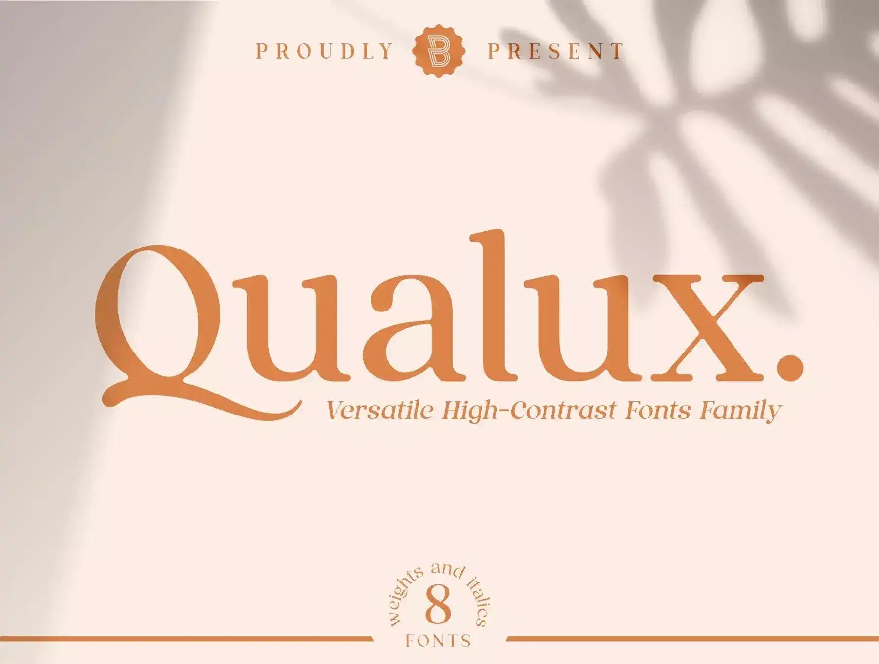 Qualux is a versatile high-contrast serif font family. Qualux comes from the words Quality and Luxury. This font has vintage characteristics with a luxurious style in light, but also has a friendly and playful style in bold. Each glyph has a soft, rounded tip. This font is suitable for many various projects such as logos, branding, magazines, signage, fashion and many more.