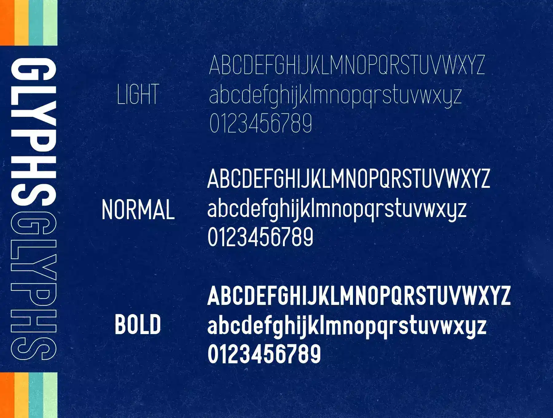 Theridge fonts features opentype, kerning, and ligatures available in 3 weights: Light, Normal, and Bold. Theridge fonts include uppercase letters, lowercase letters, numeral, punctuation and multilingual support.