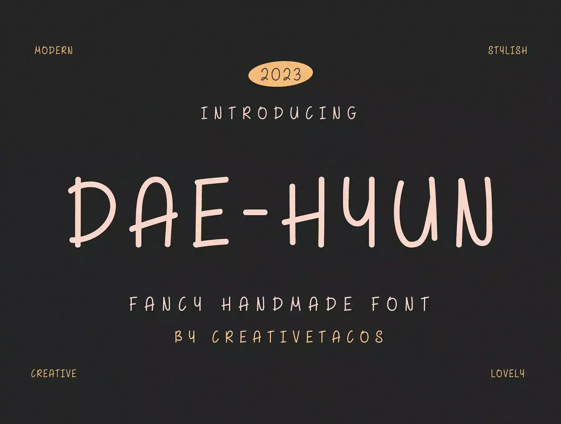 Our new font, Dae-hyun Fancy Font, is a fresh, cute font that’s just waiting to make your project more exciting and creative. It contains uppercase letters, lowercase letters, numbers, punctuation, symbols with multilingual support.