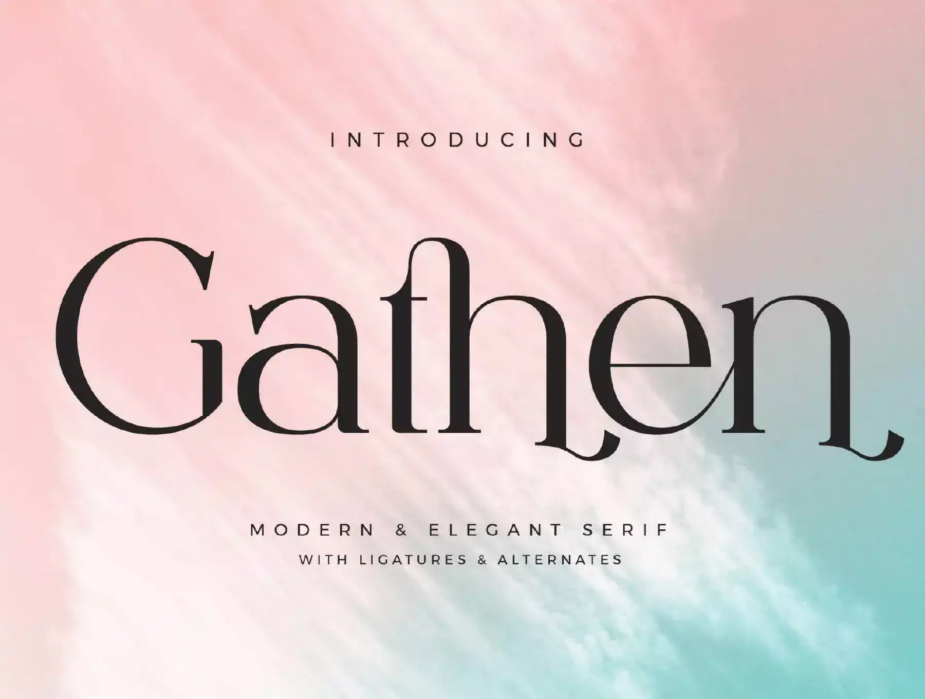 Gathen Stylish Ligature Typeface, inspired by the famous minimalist logo perfect for the purposes of designing templates, brochures, videos, advertising branding, logos and more.