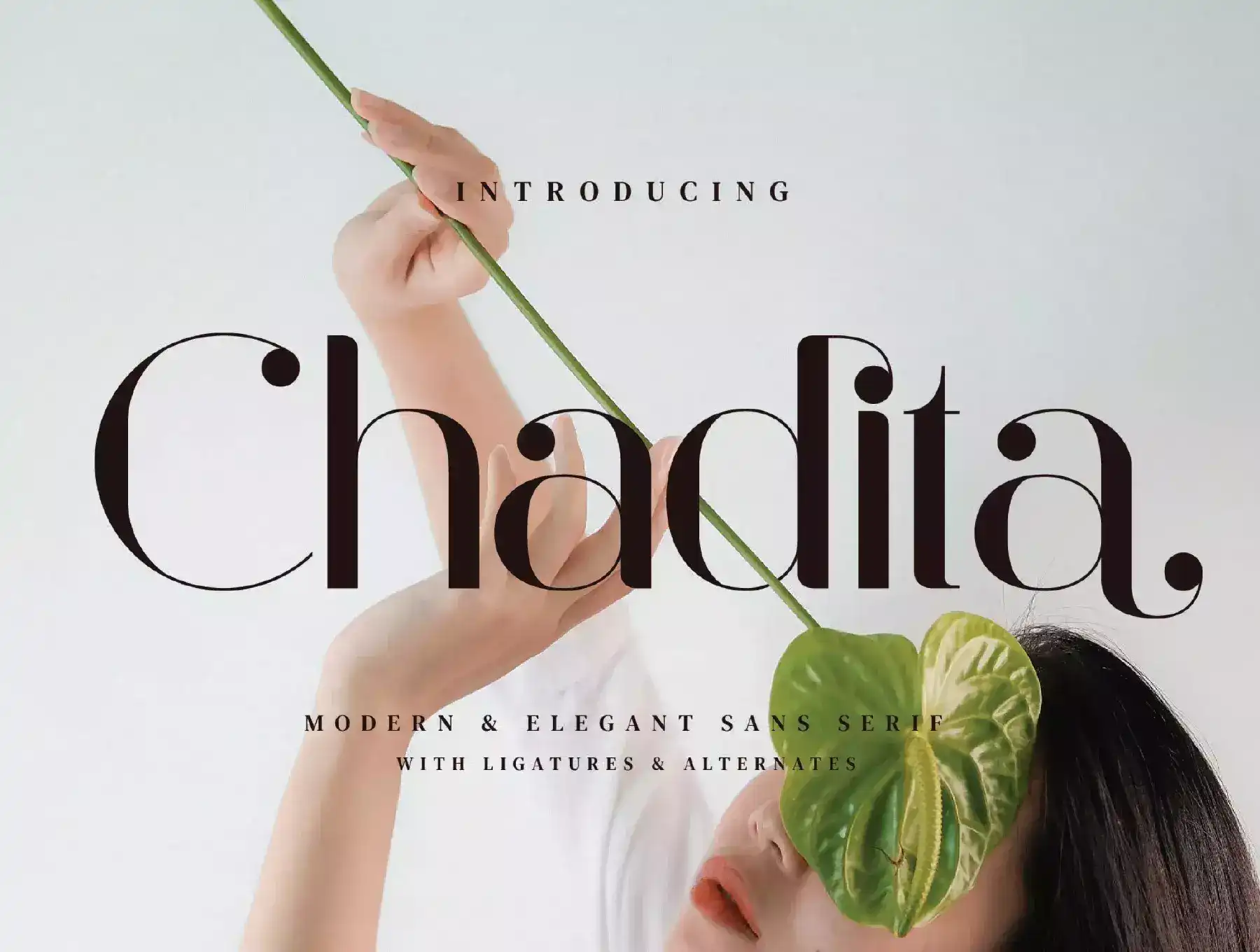 Chadita Sans Font Typeface inspired by the famous minimalist logo perfect for the purposes of designing templates, brochures, videos, advertising branding, logos, invitation, layout design, elegant crafting, beauty design and other.