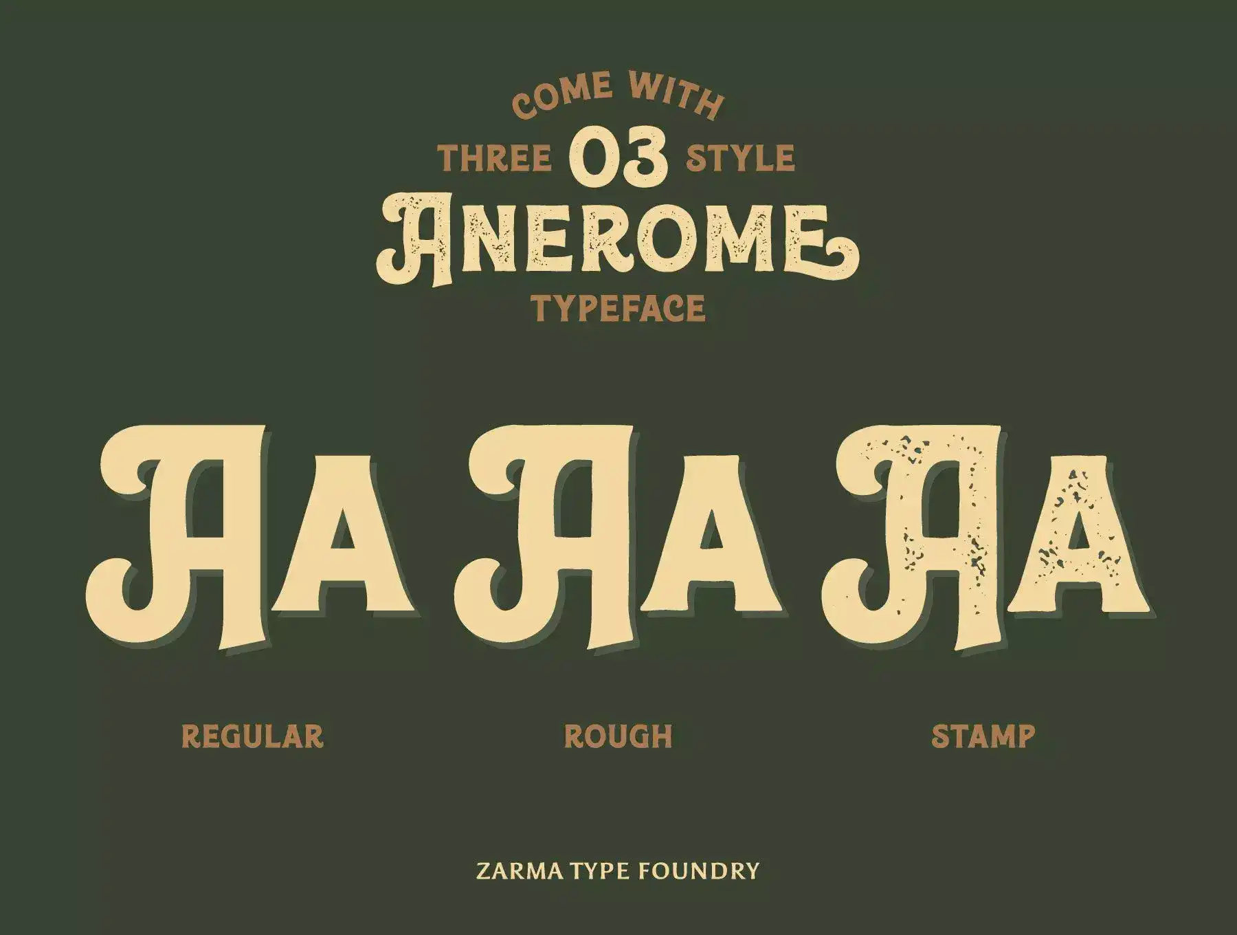 Elevate Your Designs with Anerome: The Quintessential Vintage Typeface for Timeless Appeal. Anerome, a vintage display typeface, offers a triumvirate of styles, each exuding an authentic vintage look. With over 300 meticulously crafted glyphs, including stylistic alternates and discretionary ligature characters, Anerome is a typographic masterpiece. Perfect for those seeking a gritty, grunge-infused, and hipster-inspired aesthetic, Anerome is your go-to choice for logotypes and vintage wordmarks. Its versatility extends to various graphic design applications, from branding materials and business cards to posters, t-shirts, and quotes. Make a bold statement with Anerome, where every letter tells a story of classic elegance.