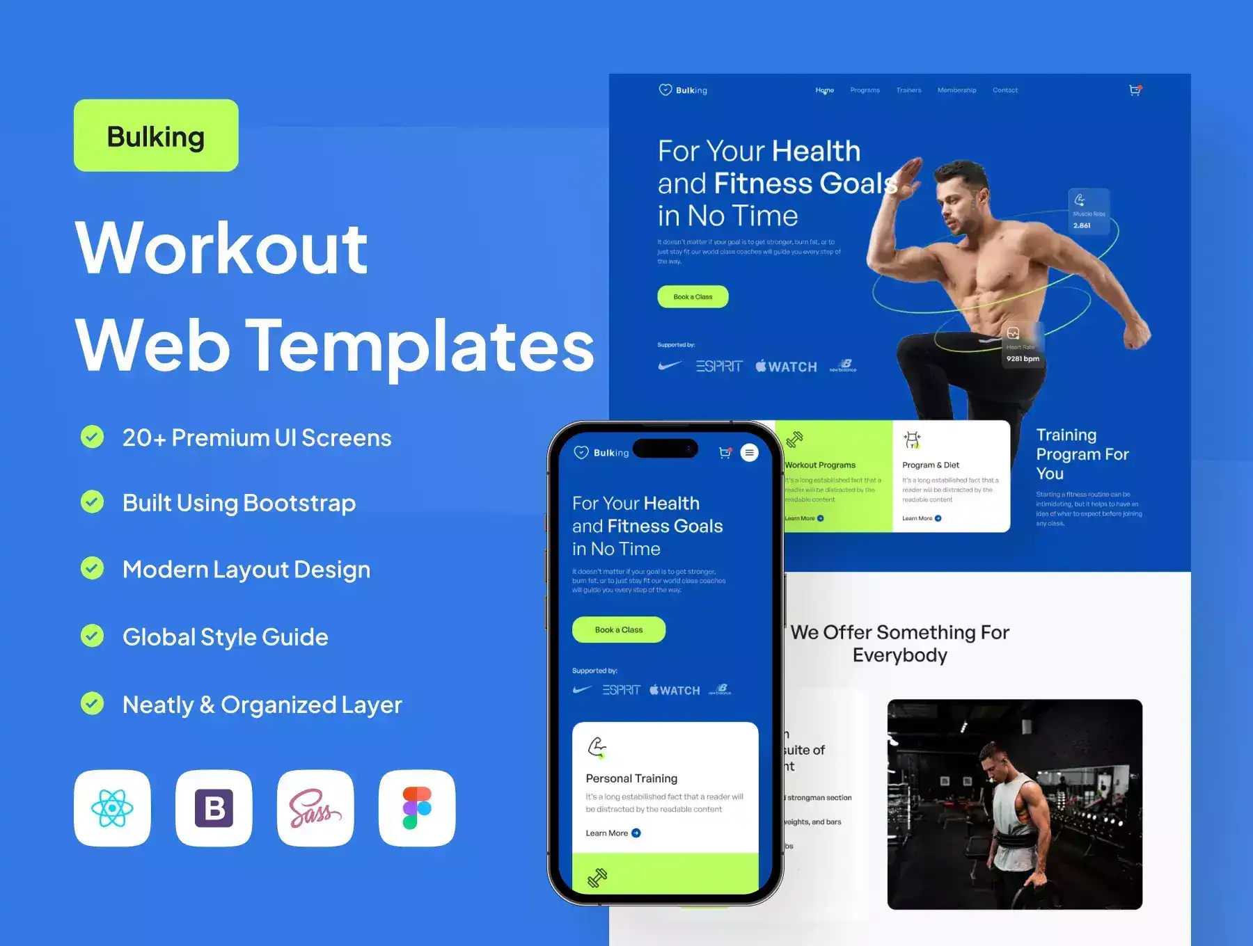 Bulking is 20+ modern screens HTML landing page template for fitness and nutrition coaching offers with 1-on-1 coaching from a certified personal trainer. Bulking! with Bootstrap was used in the construction of this package. This premium SAAS template was created to expedite the designing and developing process, and it's easily customizable with a stunning colour scheme, font sources, and style options.