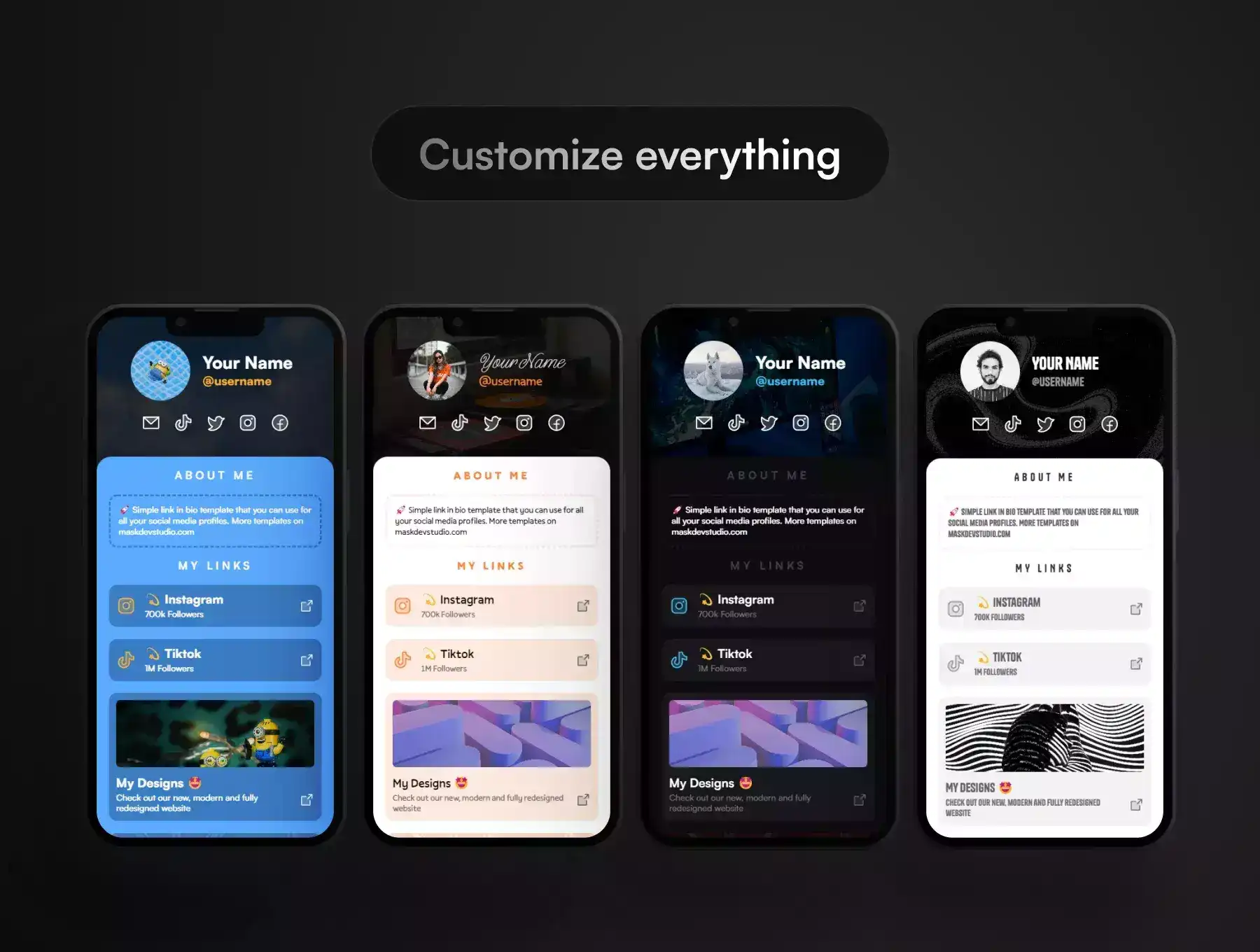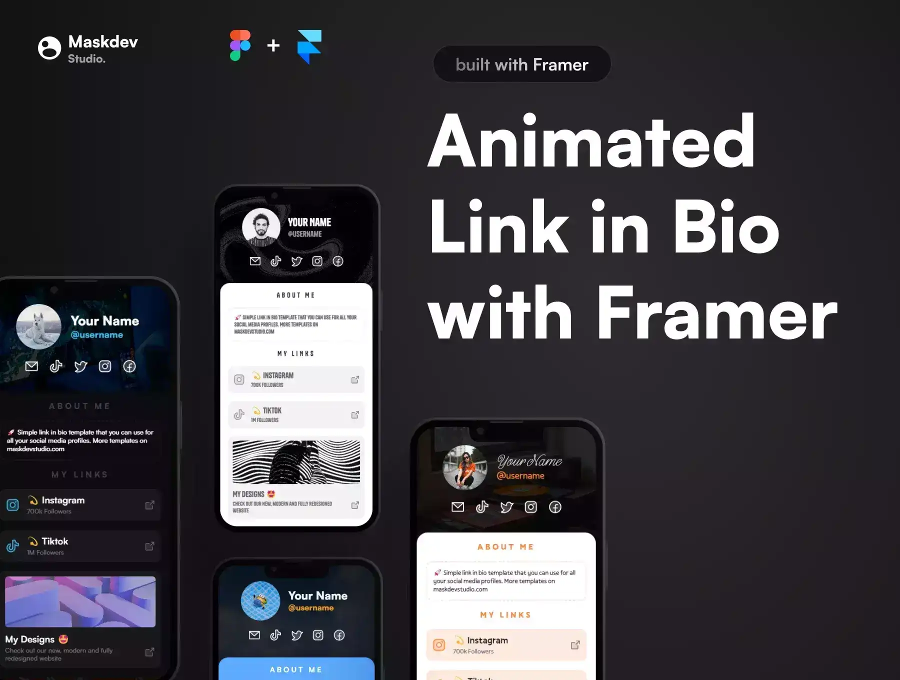 This digital product is a user-friendly template that allows you to quickly and easily customize a professional link in bio website with pre-made drag-and-drop components, using Framer.