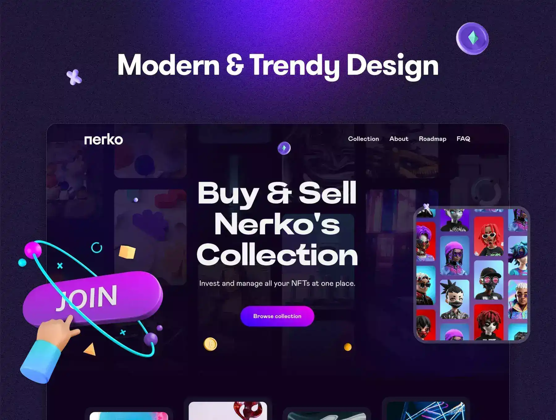 Nerko is a premium, trendy and modern WordPress Theme for build your own NFT Portfolio page. Nerko is a best designed NFT blockchain, crypto, crypto art, digital and many more outstanding features, full responsive and mobile-friendly.