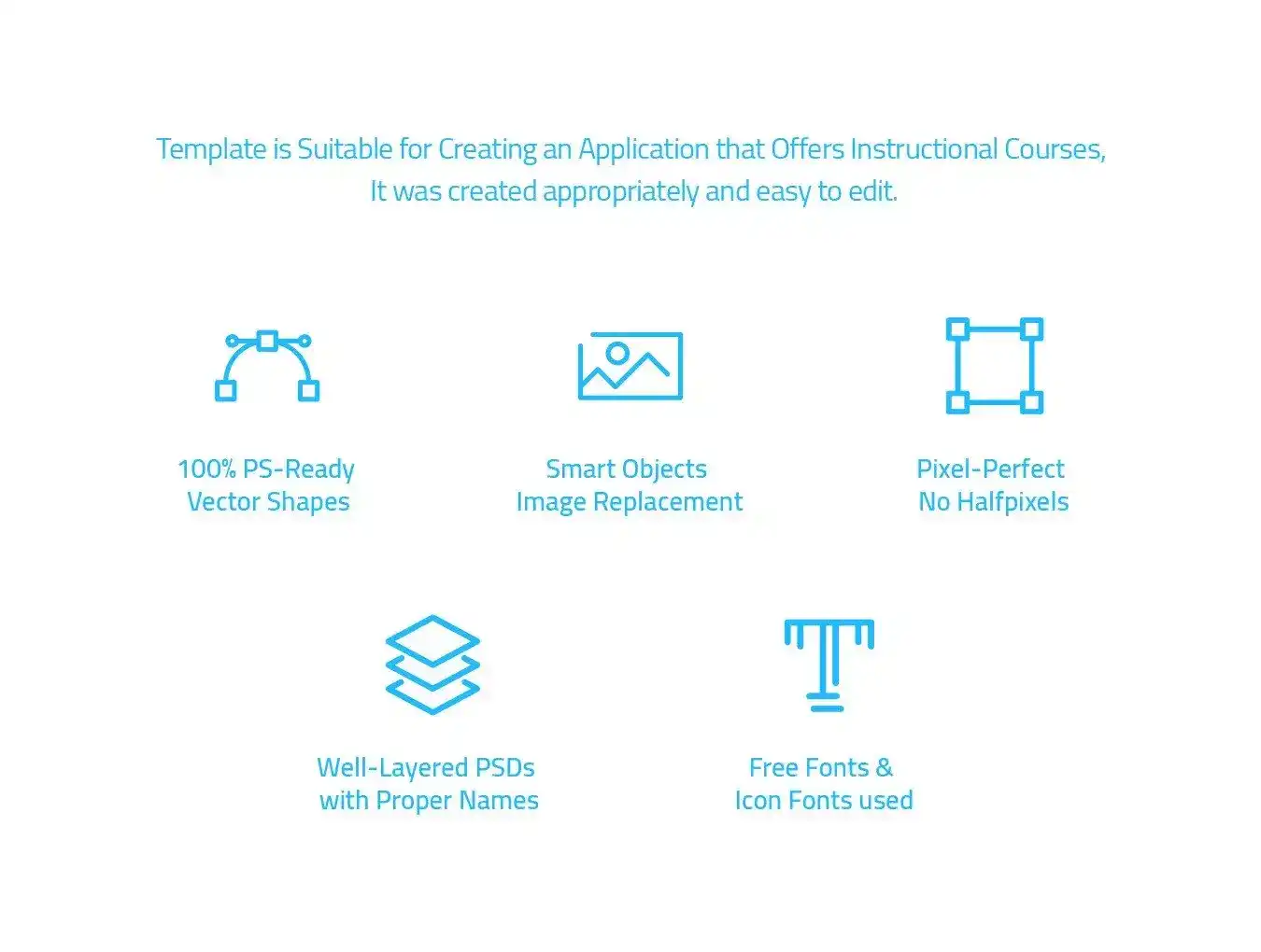 Coursate UI Kit is suitable for creating an application that offers Instructional Courses online. All screens were designed appropriately and are easy to edit. High quality pack of 30 android or ios compatible mobile UI screens to start your projects and speed up your design process. All screens are vector based so resizing to fit your needs is easy! Coursate UI Kit is compatible with Photoshop.