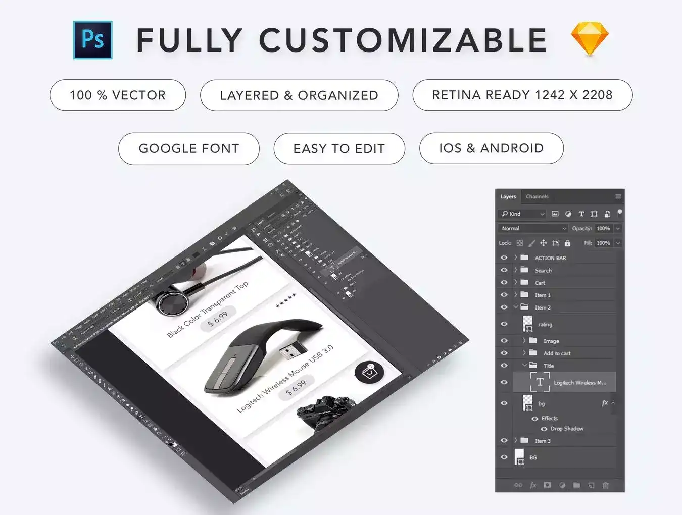 This is a perfect clean E-Commerce Shopping UI Kit. It comes with an eye-catching style focussing on awesome mobile shopping experiences on mobile devices. It’s optimised order and checkout process provides you the best components to start your own mobile E- Commerce App from scratch.
