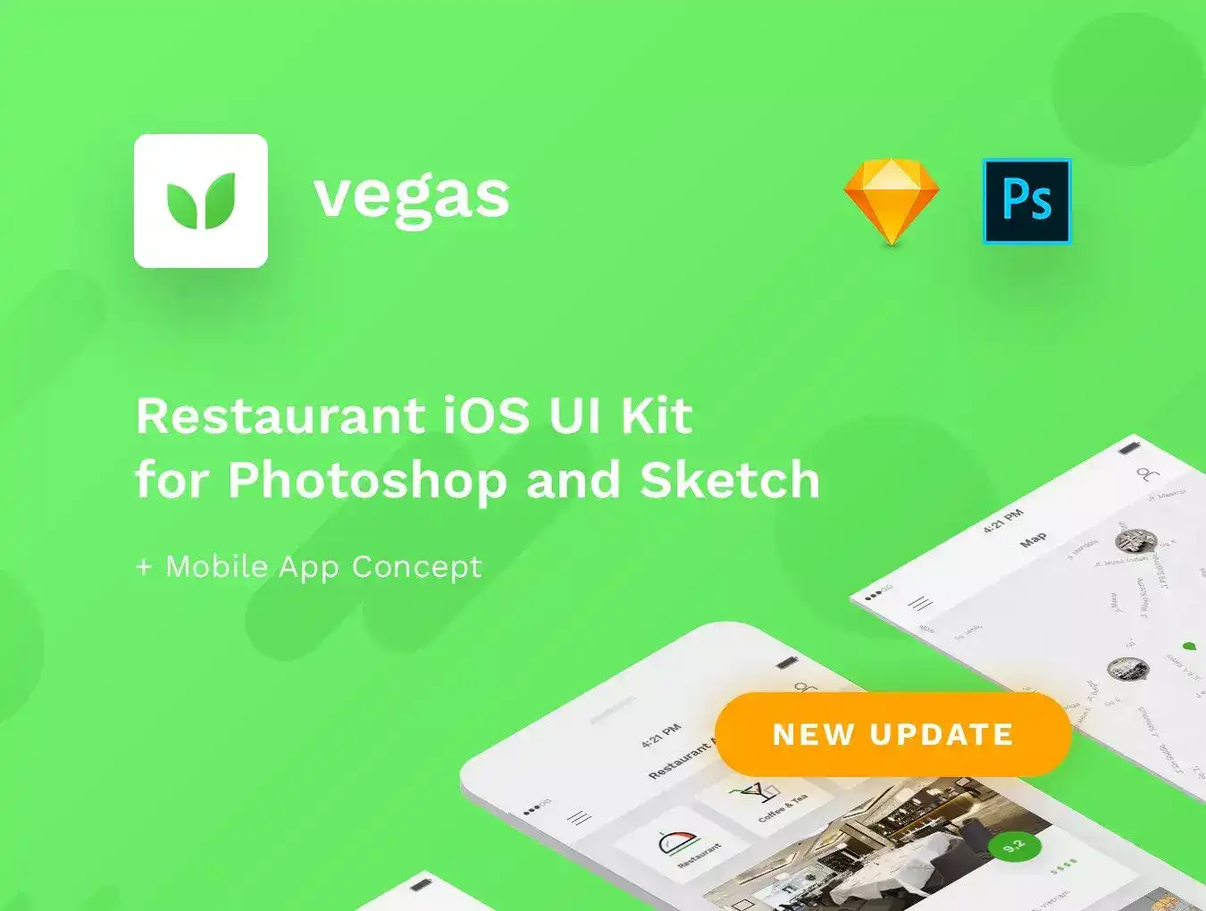With 24 screen in white and dark version and UI elements combined into high-quality source files for Photoshop.