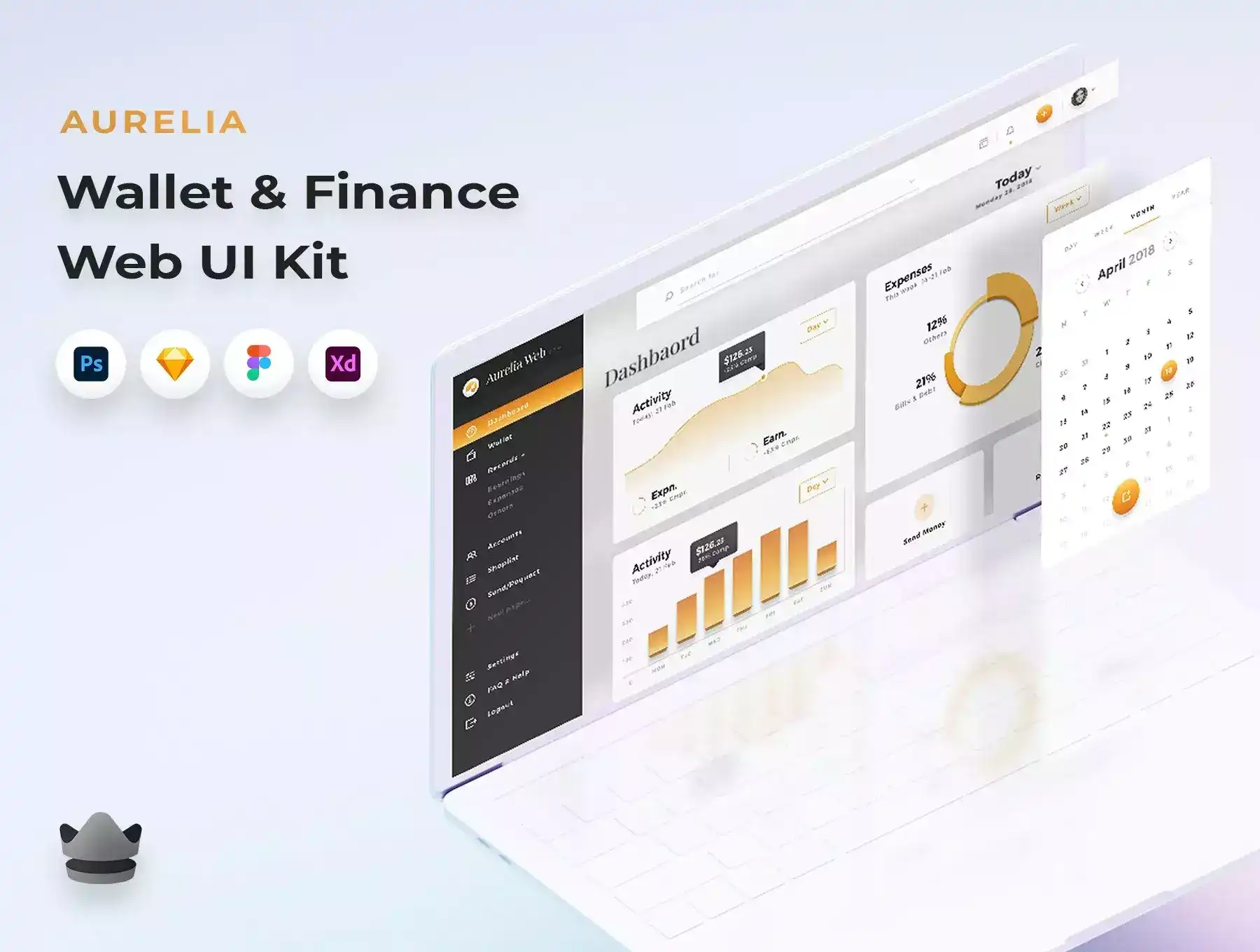 Aurelia UI Kit is compatible with Sketch, Photoshop, XD & Figma