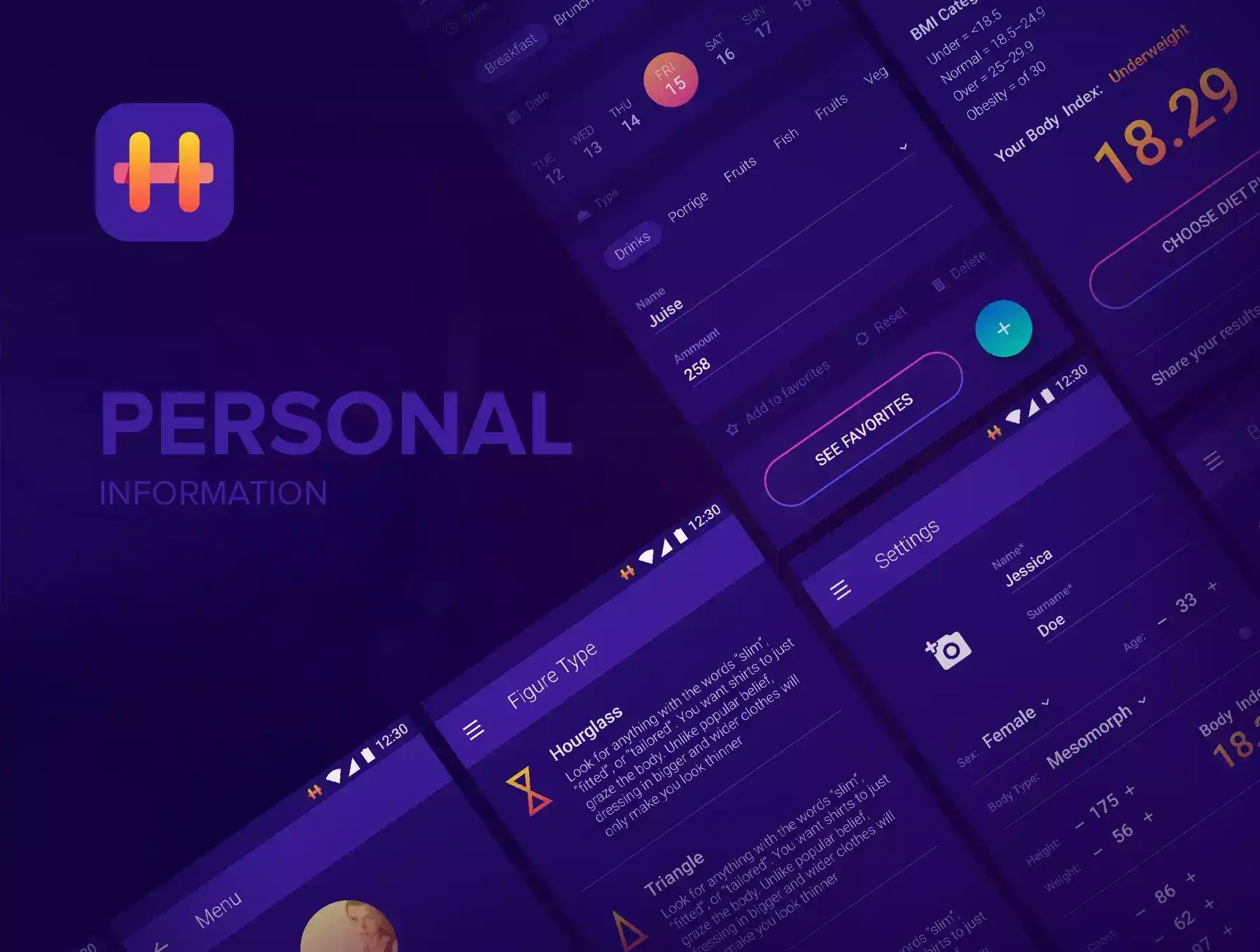 FIT.APP - including 16 unique screens and components easily resized & Customized. All screens and components 1x, 2x, 3x version anable. App template of high quality with flat and modern design.