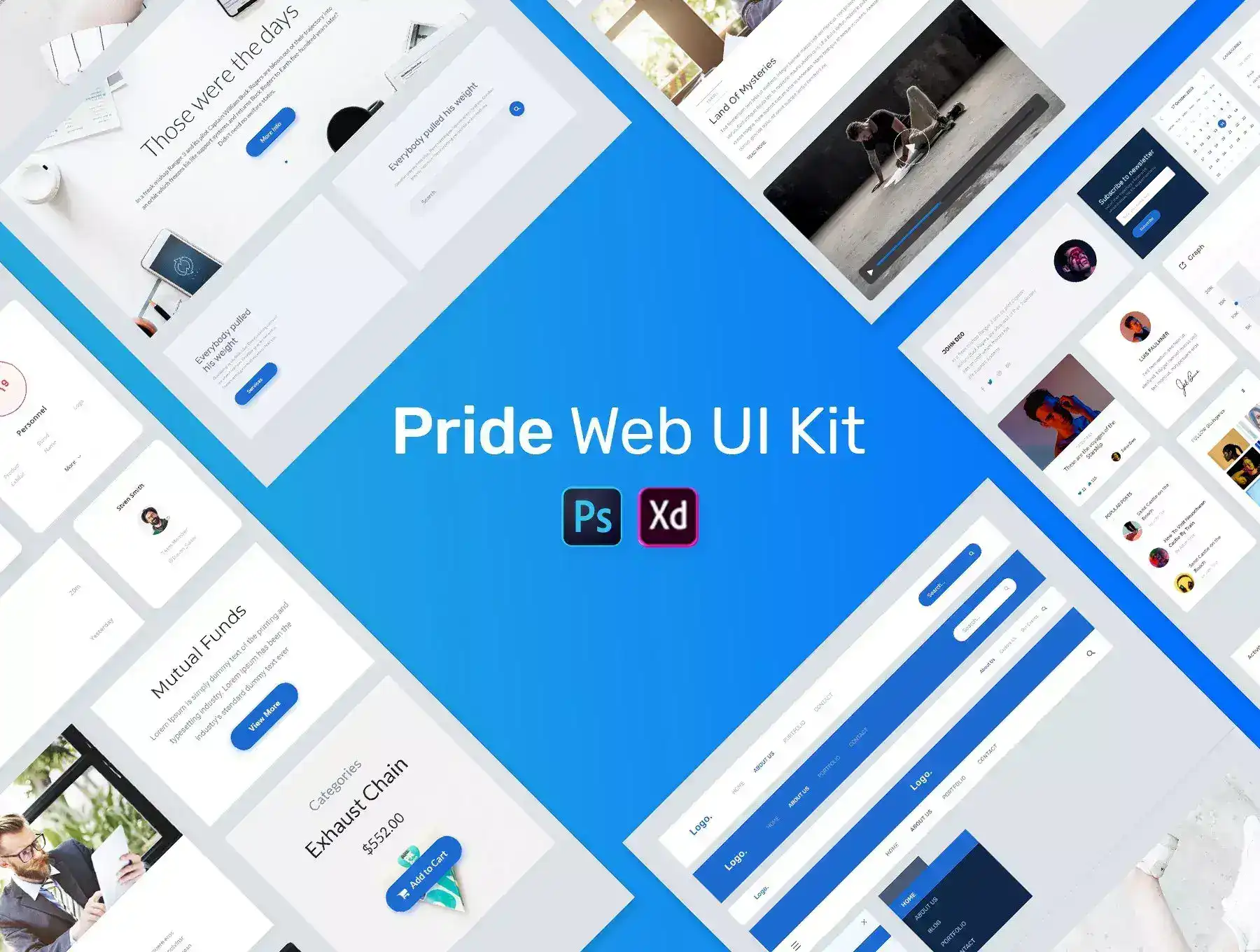 Pride UI Kit includes more than 500 elements., Web UI kit for web app developers and eCommerce apps. As all the objects are created using shapes. This kit would be a great match for your Web Application!