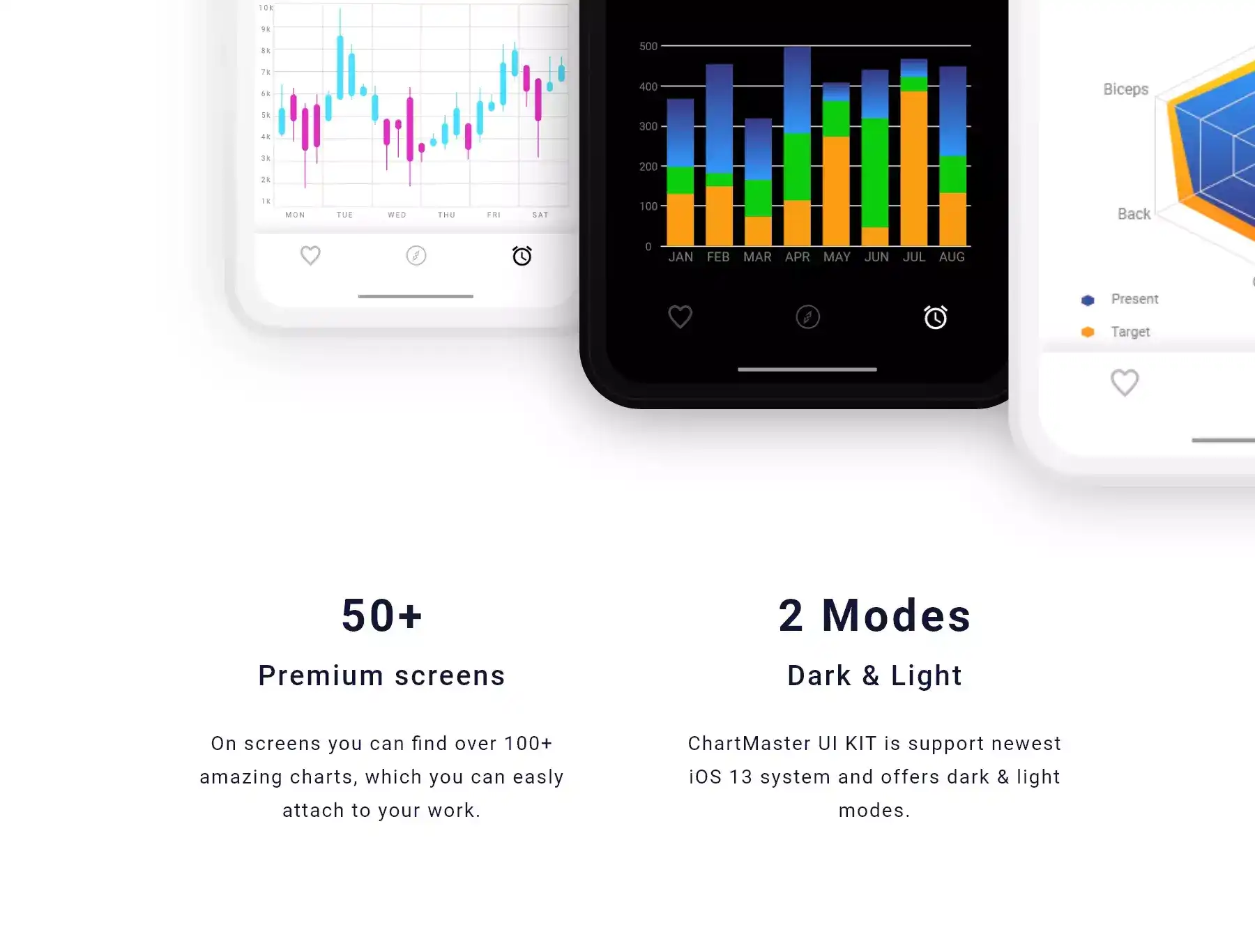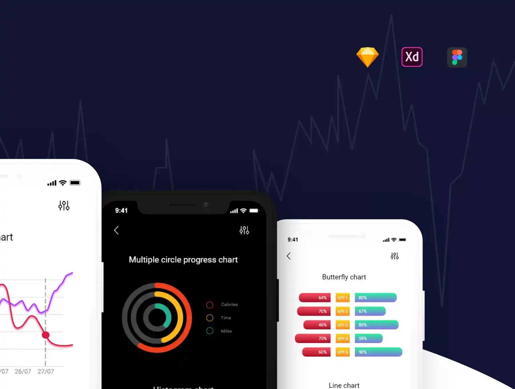 Today we have for you around 50+ charts in two sets of colors. This product will speed up your app design process and make your work to catch the eye.
