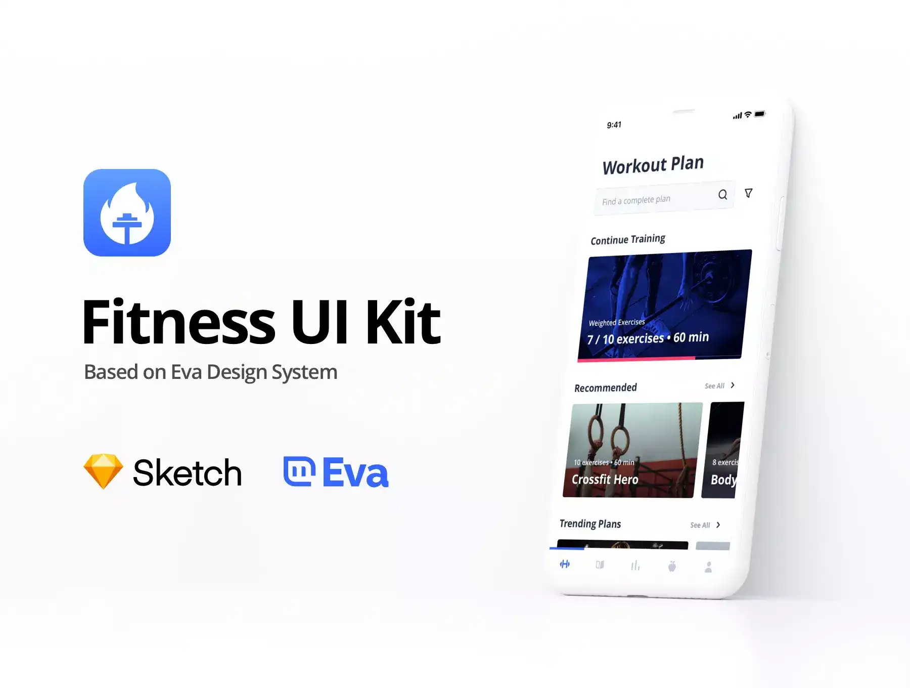A Fitness UI Kit based on Eva Design System contains 50+ responsive general-purpose mobile screens designed with the best UX/UI practices.
