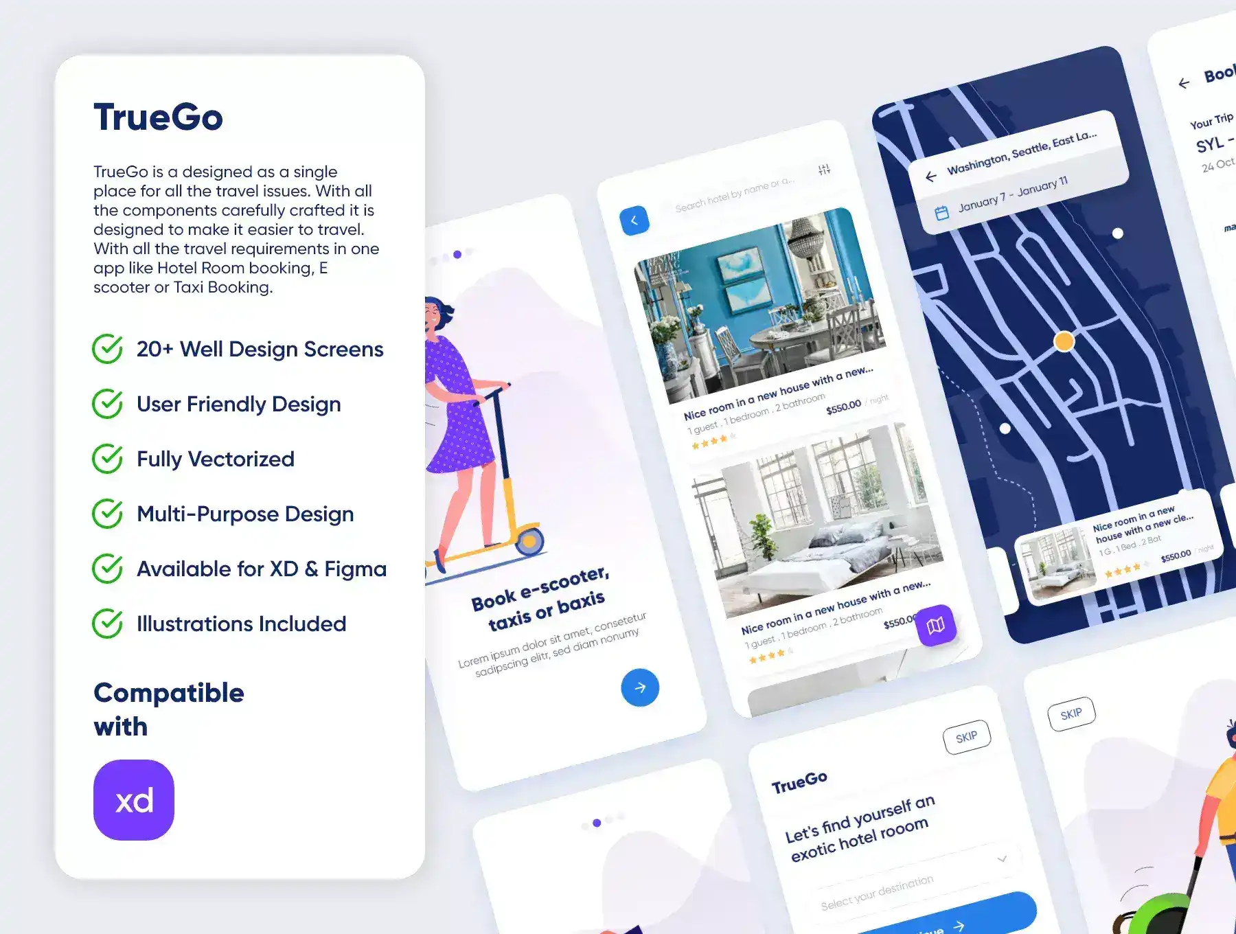 TrueGo is a designed as a single place for all the travel issues. With all the components carefully crafted it is designed to make it easier to travel. With all the travel requirements in one app like Hotel Room booking, E scooter or Taxi Booking,