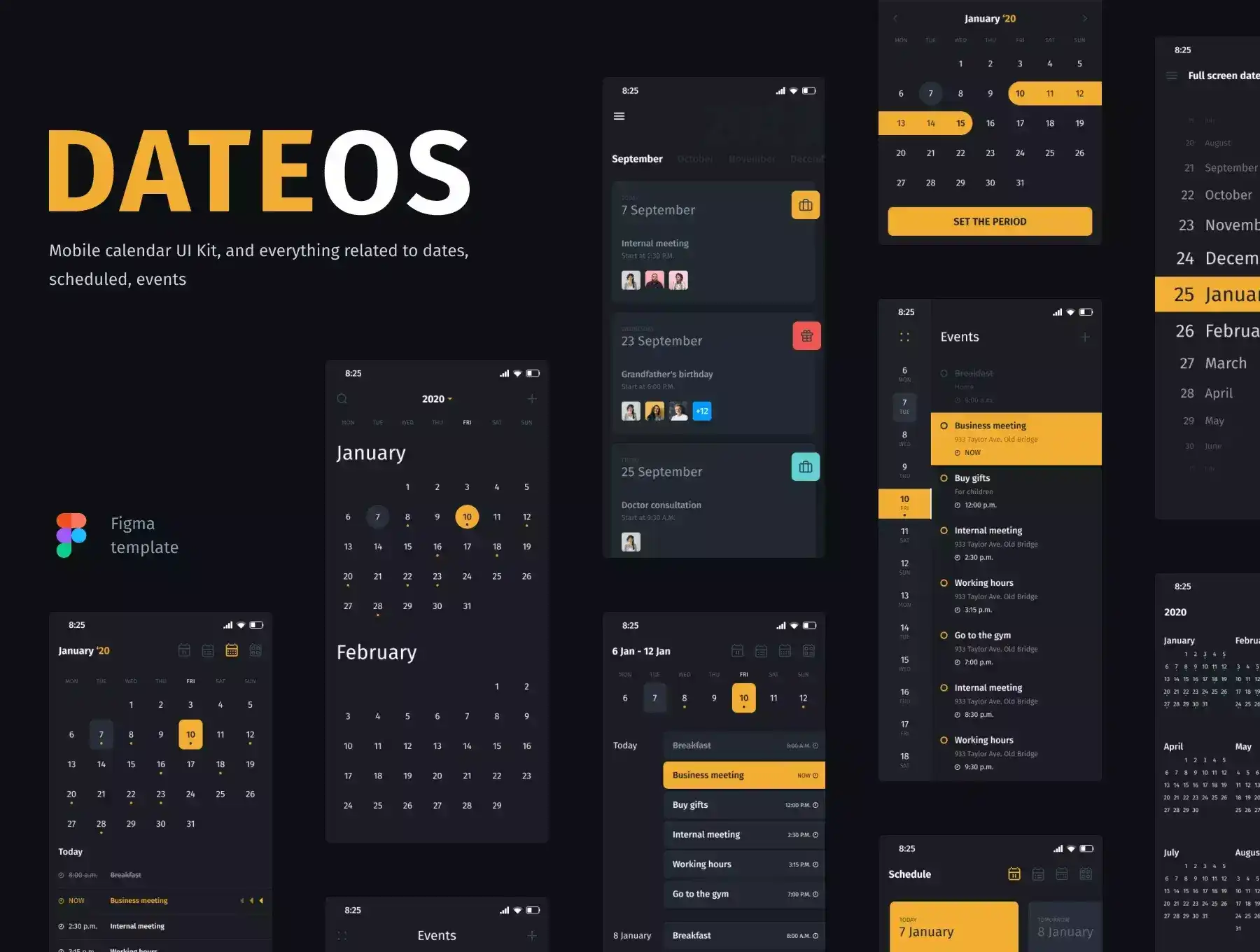 DateOS UI Kit was created to facilitate the work of designers. In this UI Kit you can find many components that will facilitate your work, when designing applications where you use date, calendars, date pickers, and more.