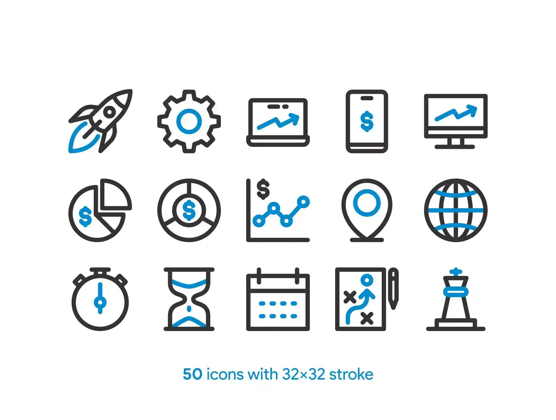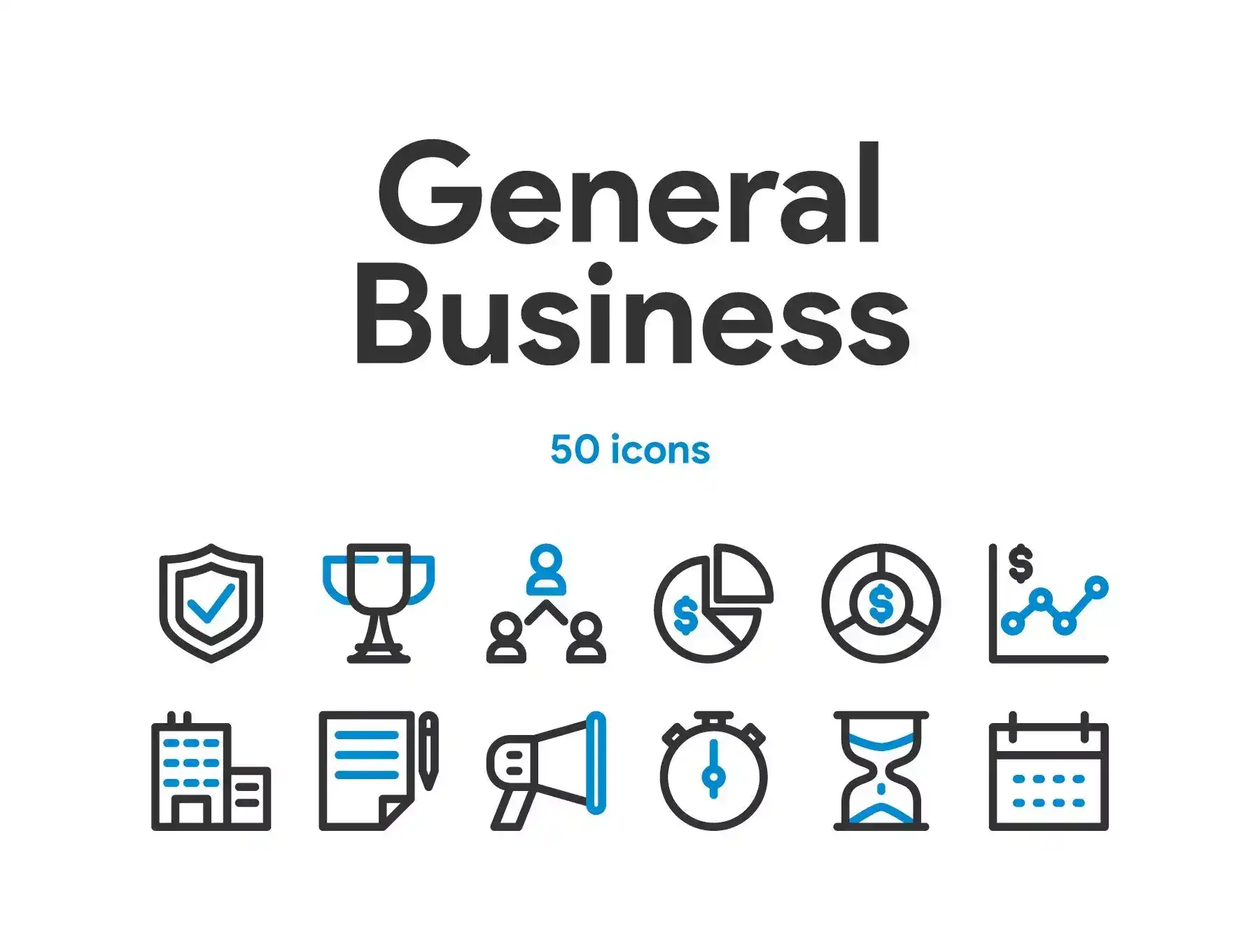 General Business Icon Set consist of 50 icons with 32x32 px grid. Click preview button to see all the icons. File included in pack: .ai (expanded and unexpanded), .eps, .svg, .jar, .webp. Like, comment, and follow us to se more updates!