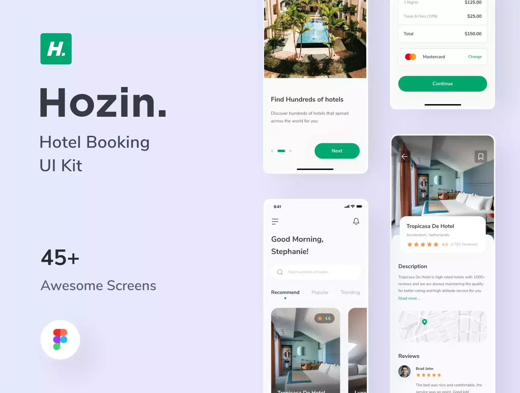 Hozin is a hotel booking UI kit with a clean style contains 45+ high quality and premium screen, 75+ components for iOS with iPhone X screen size (375 x 812). Hozin UI kit compatible for Figma with well layered and organized and with free fonts family.