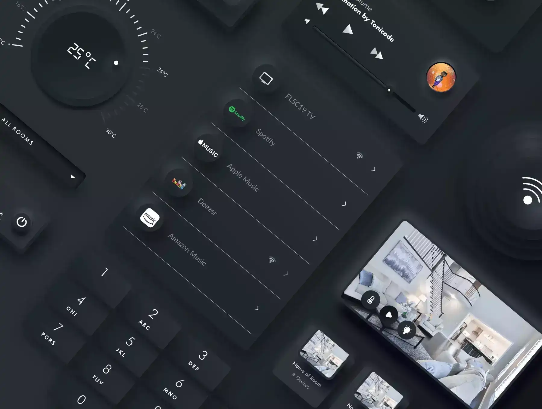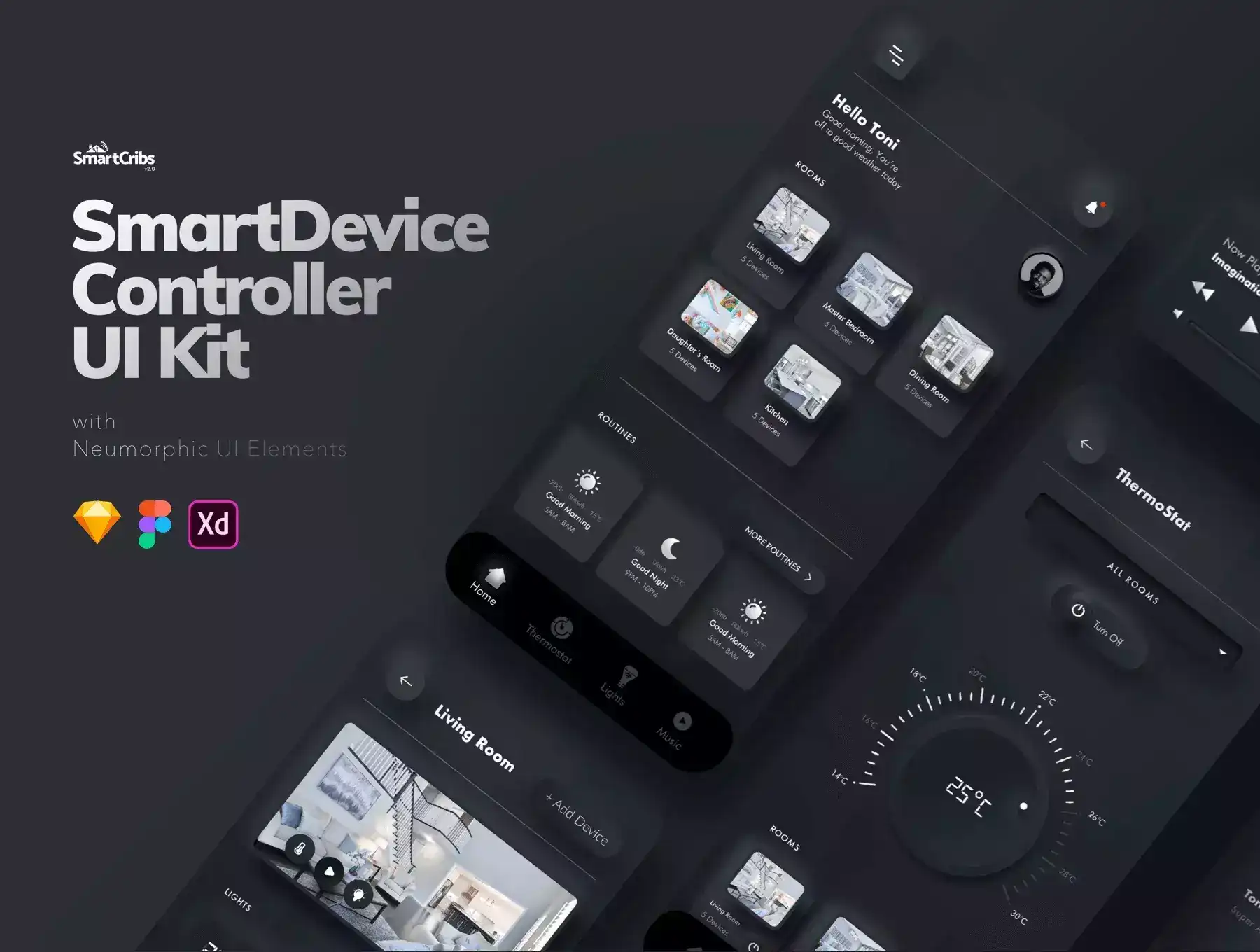 Here's an iOS UI Kit for home automation apps. It includes 13 ready-made screens to kickstart your projects. This kit is created with fully customizable components.