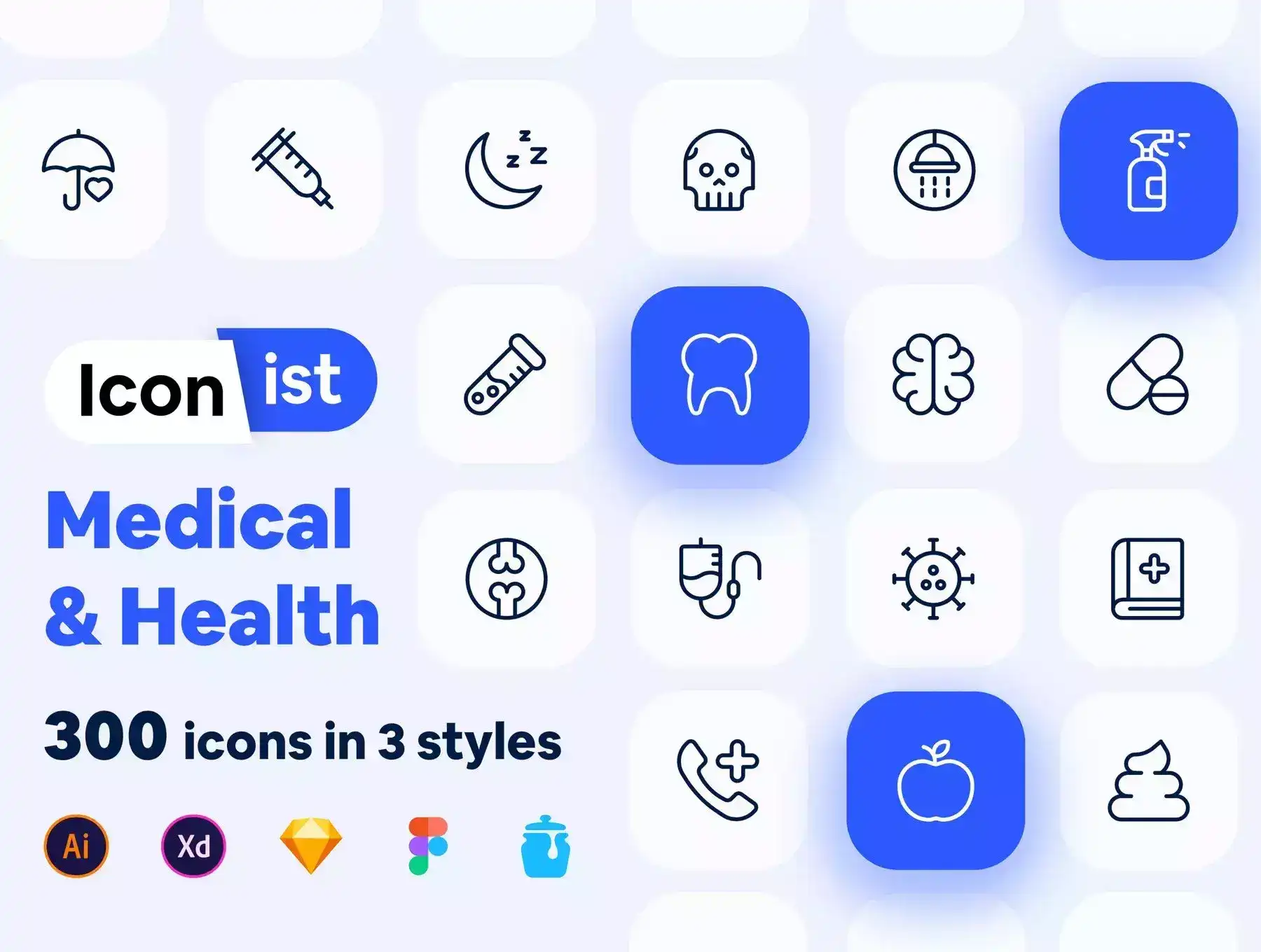 The Health and Medical Icon set is made of 300 icons in 3 styles (outline, glyph, two-tone) and it is appropriate for designing applications and websites with health and medical themes.