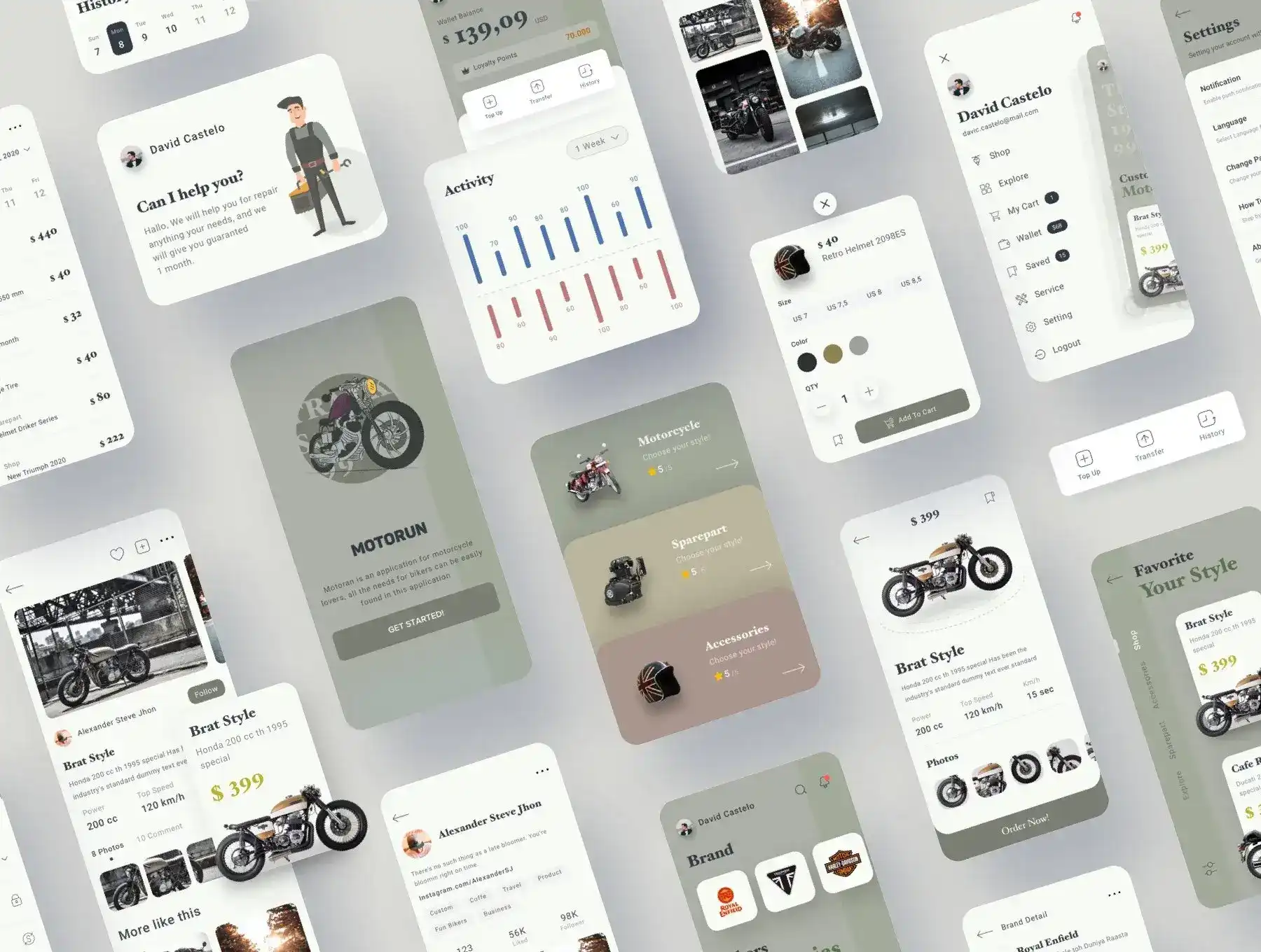 Motorun is a premium UI Kit that is customizable and usable with neat components. 15 premium screens you can use right away in your projects.
