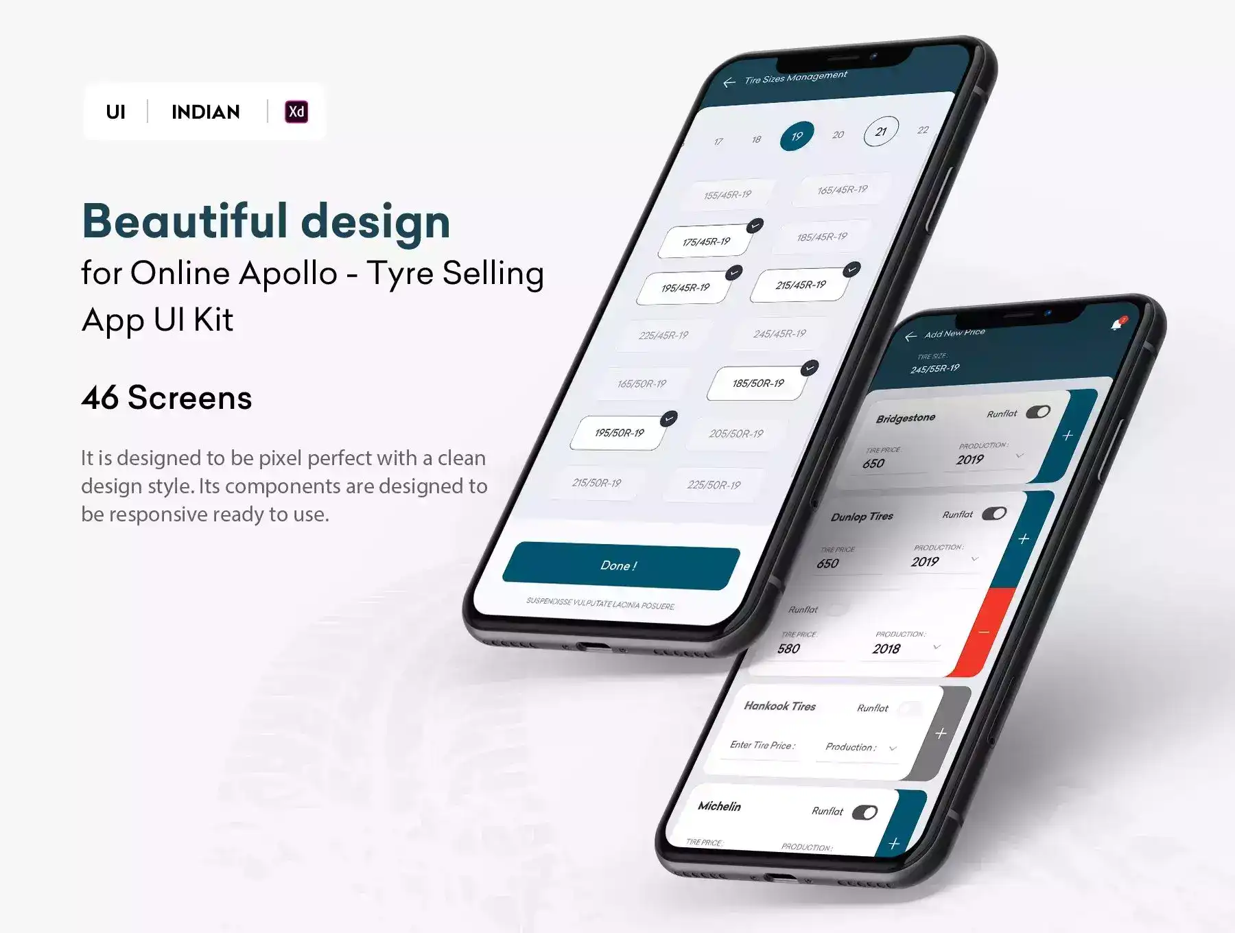 Online Tyre Selling Kit is the high quality premium pack, include 46 screens for your next Online Tyre Selling project. We continue to add new things to make our template more beautiful and strong every day. You will be free to use all our updates. This UI kit is ready to use for your next project!